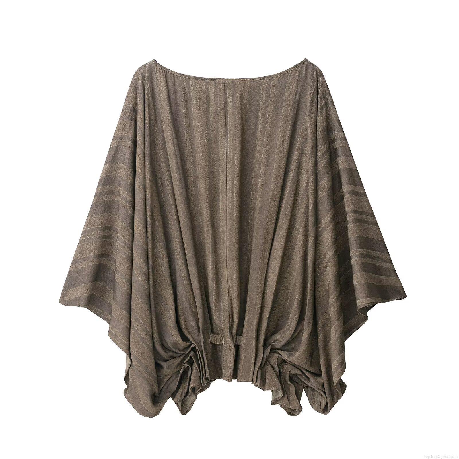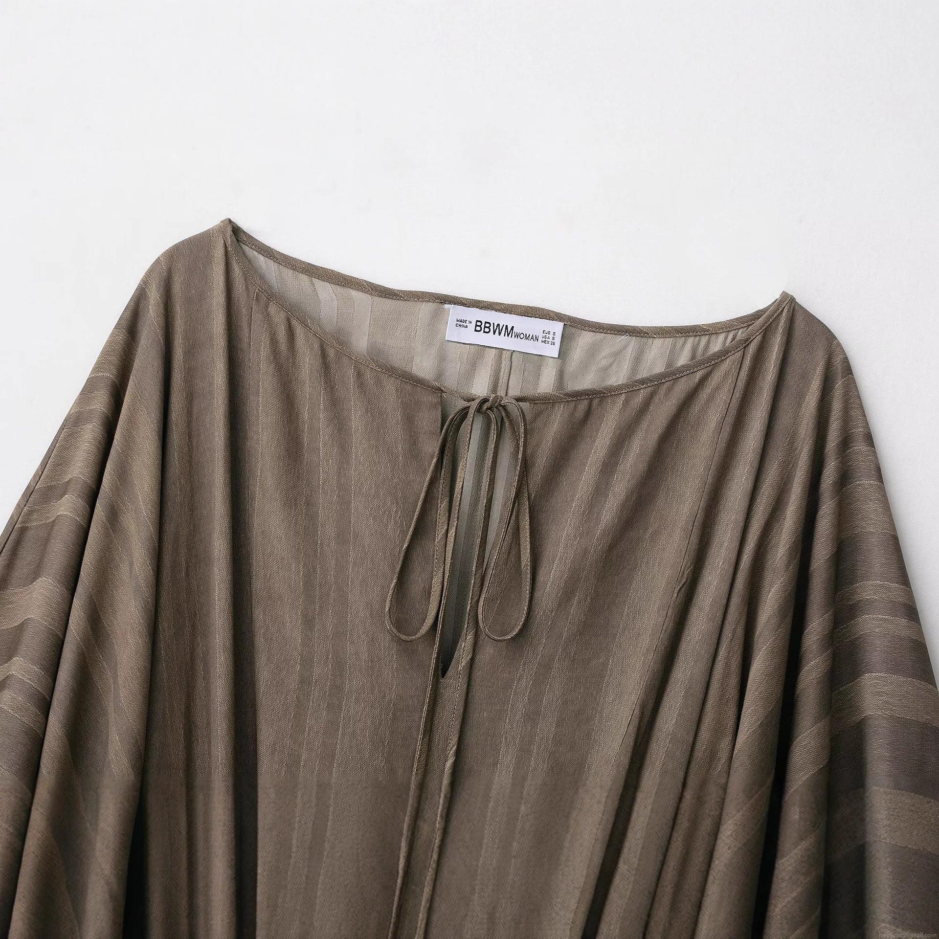 • Women's Striped Batwing Sleeve Blouse 100% Polyester Pleated Tie Neck Top Autumn Casual Loose Fit Shirt For Women