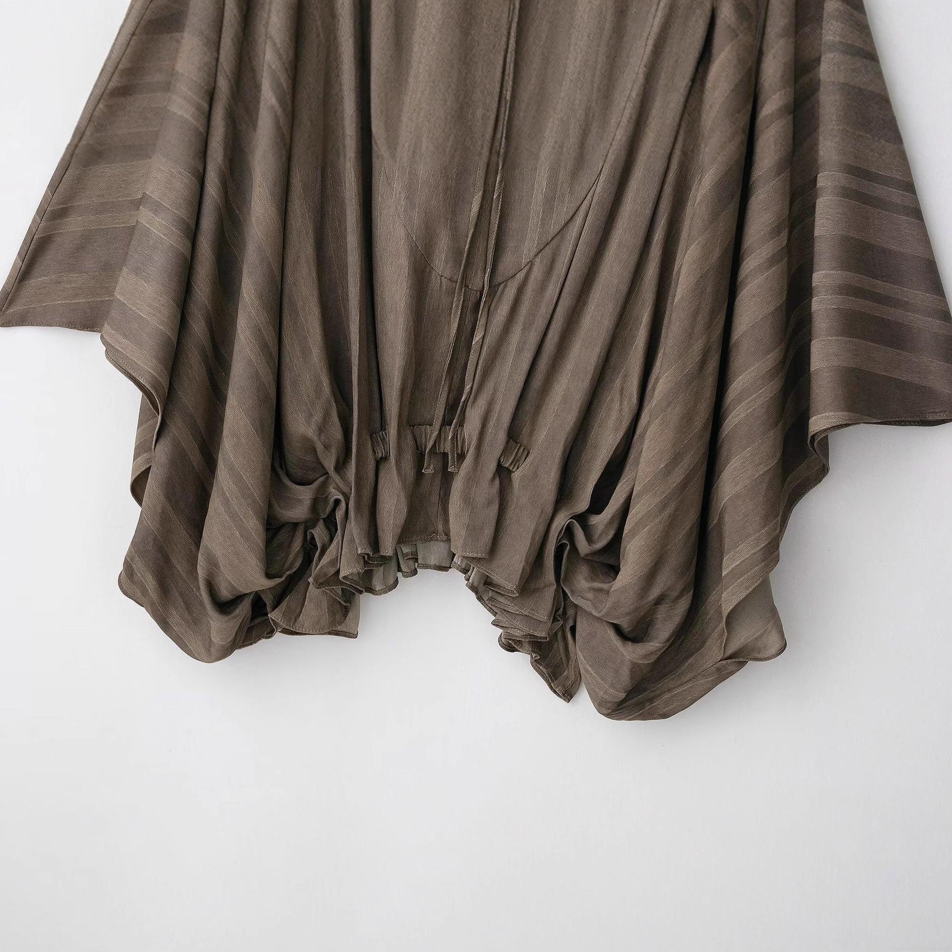 Horizontal Stripes, Pleats, Drawstring, Lace, Batwing Sleeves