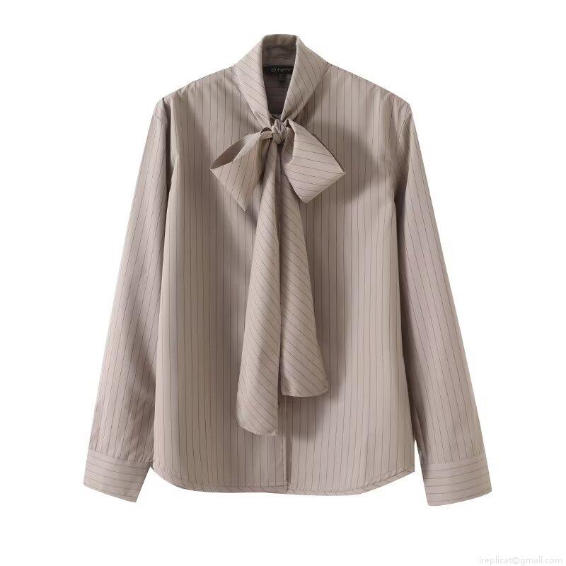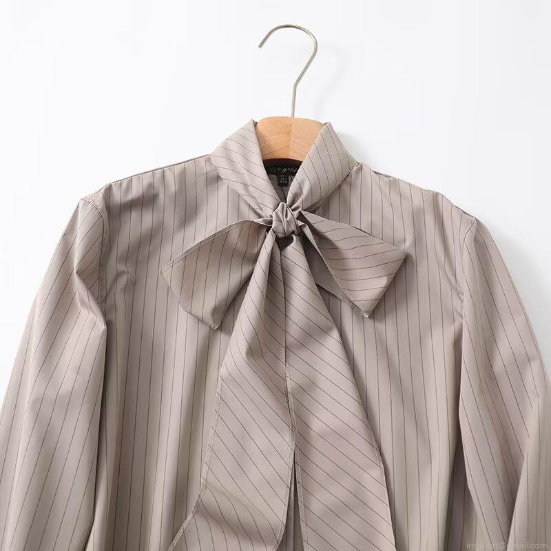 • Women's Striped Bow-Tie Neck Shirt Viscose Blend Long Sleeve Blouse Elegant Commuter Office Top For Ladies Spring Autumn Fashion