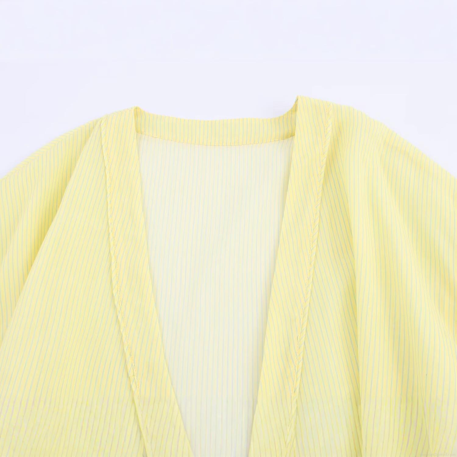 • Women's Striped Kimono Style Blouse Tie Front V Neck 3/4 Sleeve Polyester Casual Summer Tops Lightweight Cardigan Shirt for Women