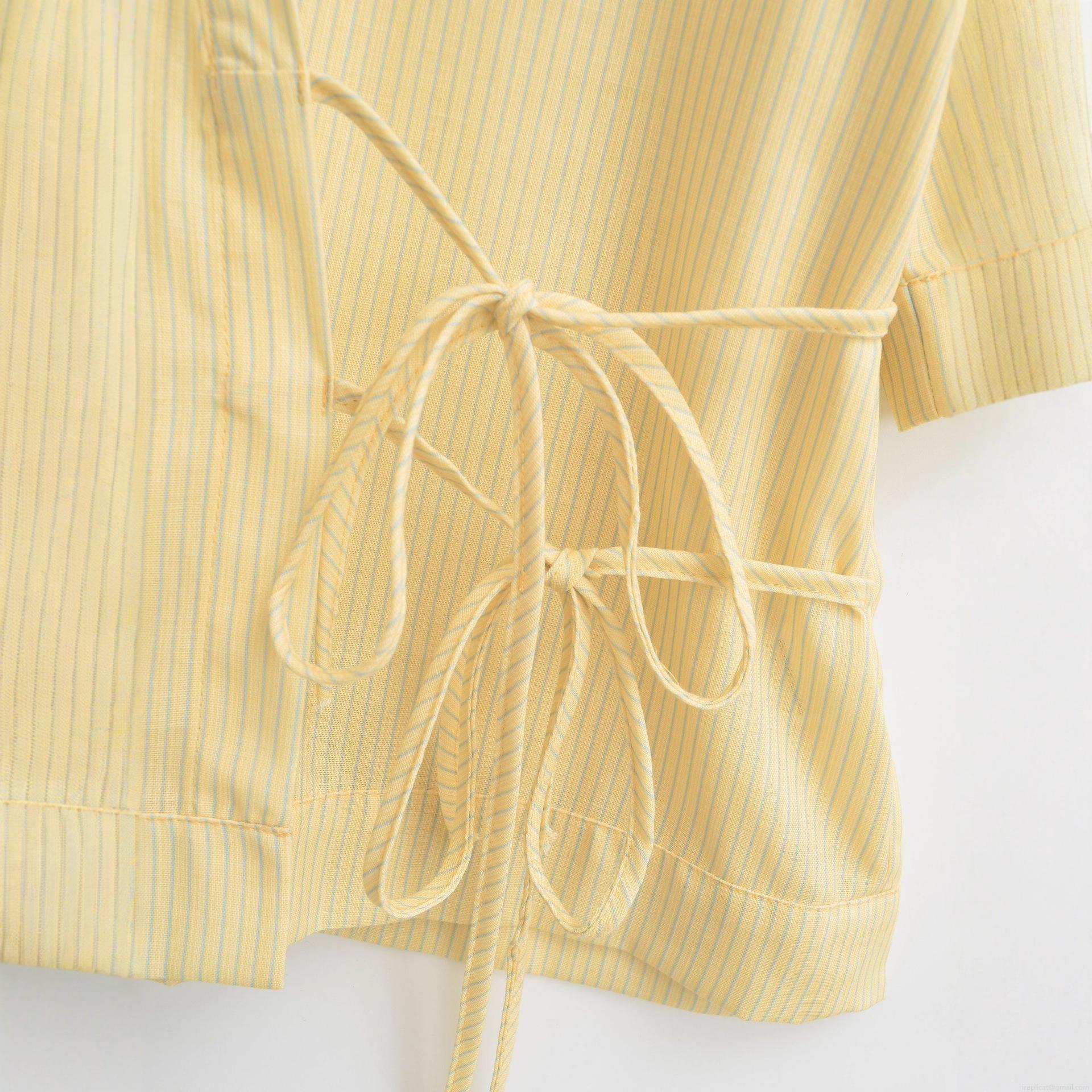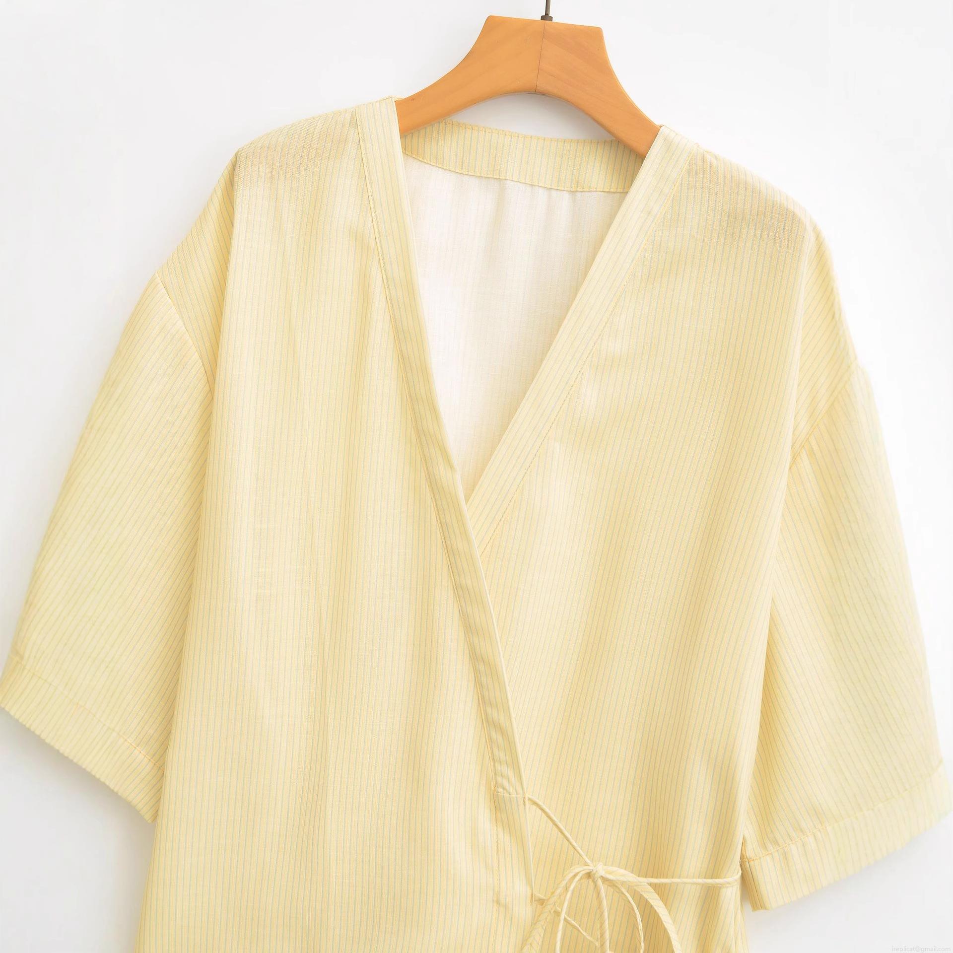 • Women's Striped Kimono Style Tie Front Blouse V Neck Butterfly Bow Waist Casual Half Sleeve Wrap Top Summer Vacation Shirt