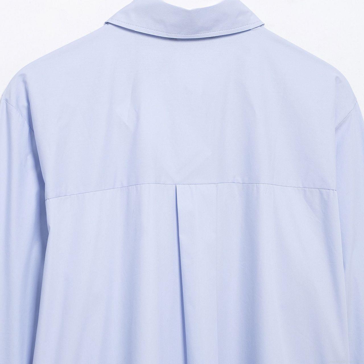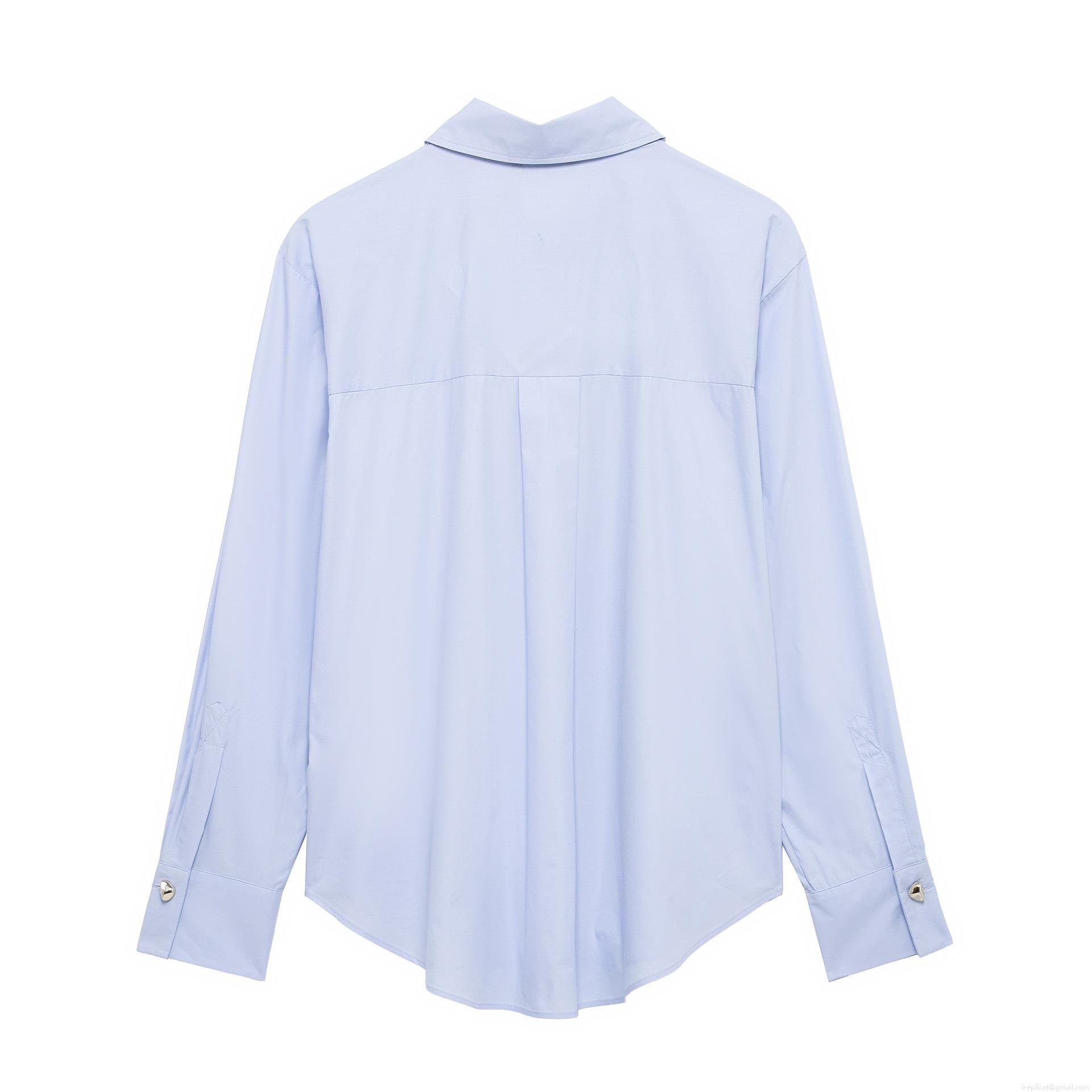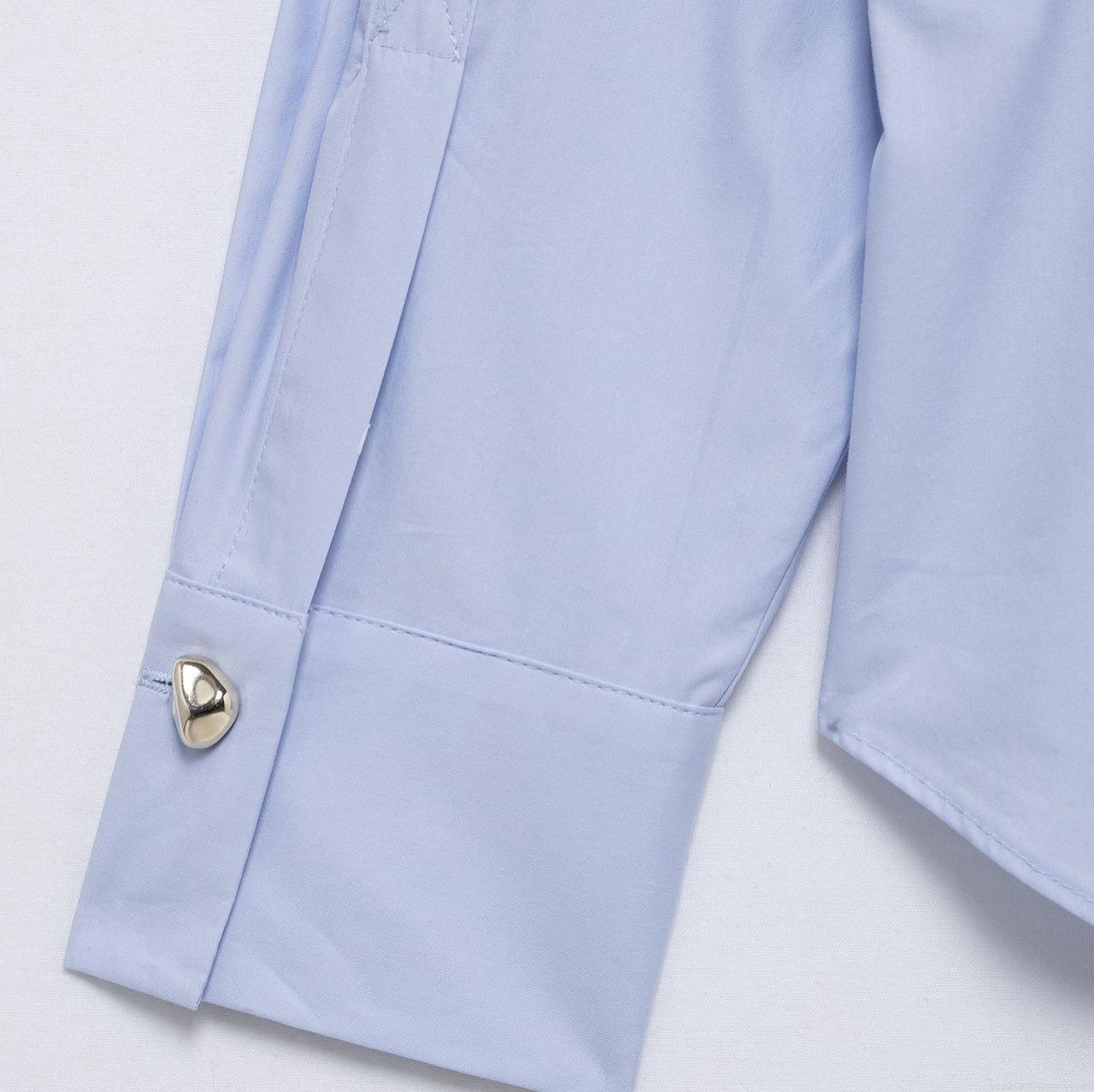 Stripe, Button Decoration, Shirt Collar, Curved Hem, Metal Irregular Buckle