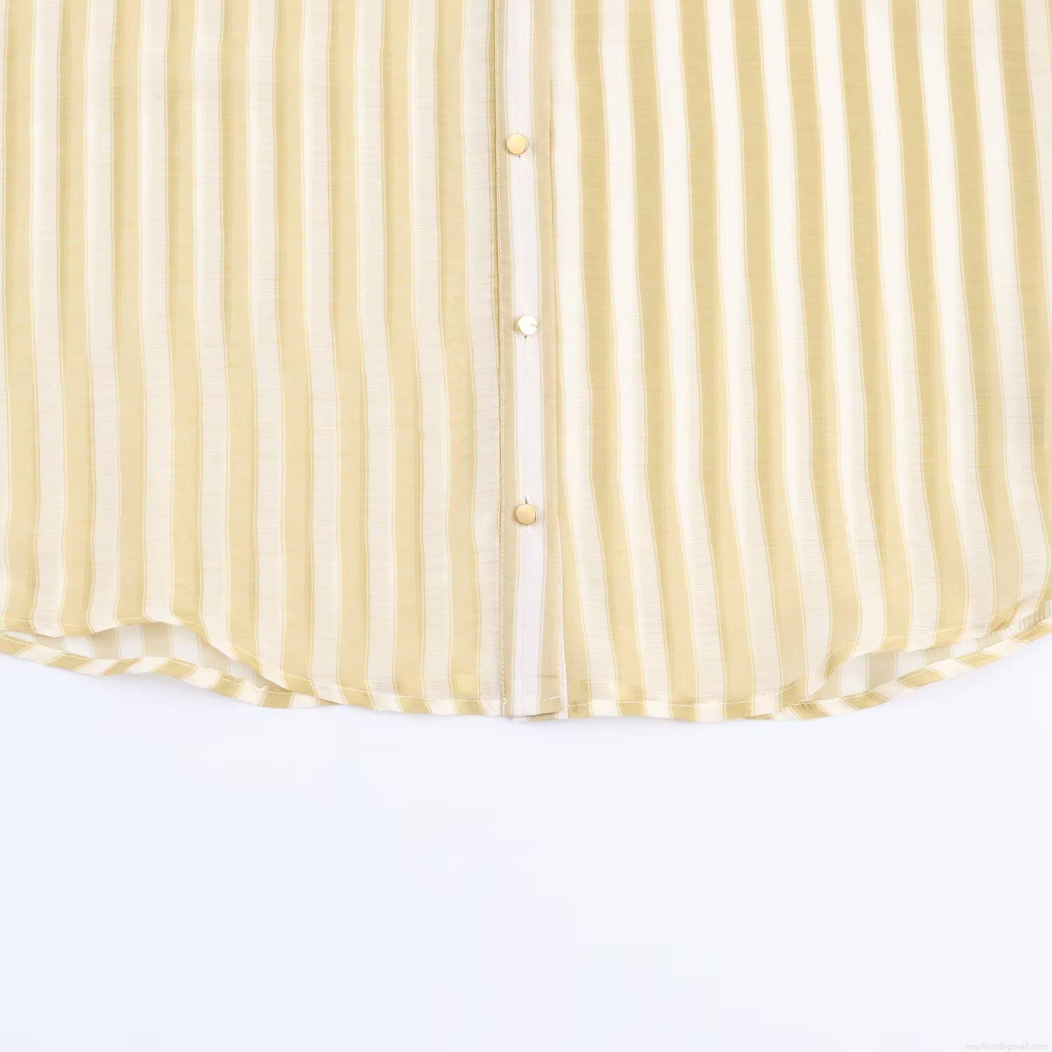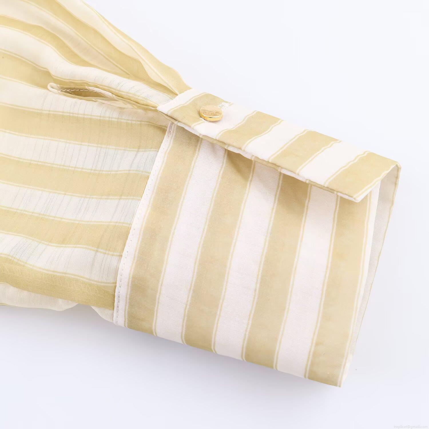 • Women's Striped Long Sleeve Blouse Casual Loose Turn-down Collar Button Down Shirt With Gold Buttons Polyester Spandex Top For Women Autumn Casual Wear