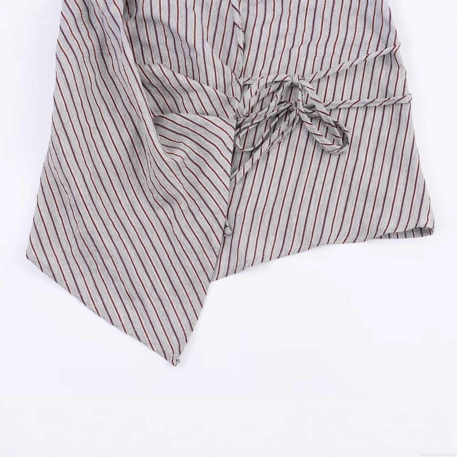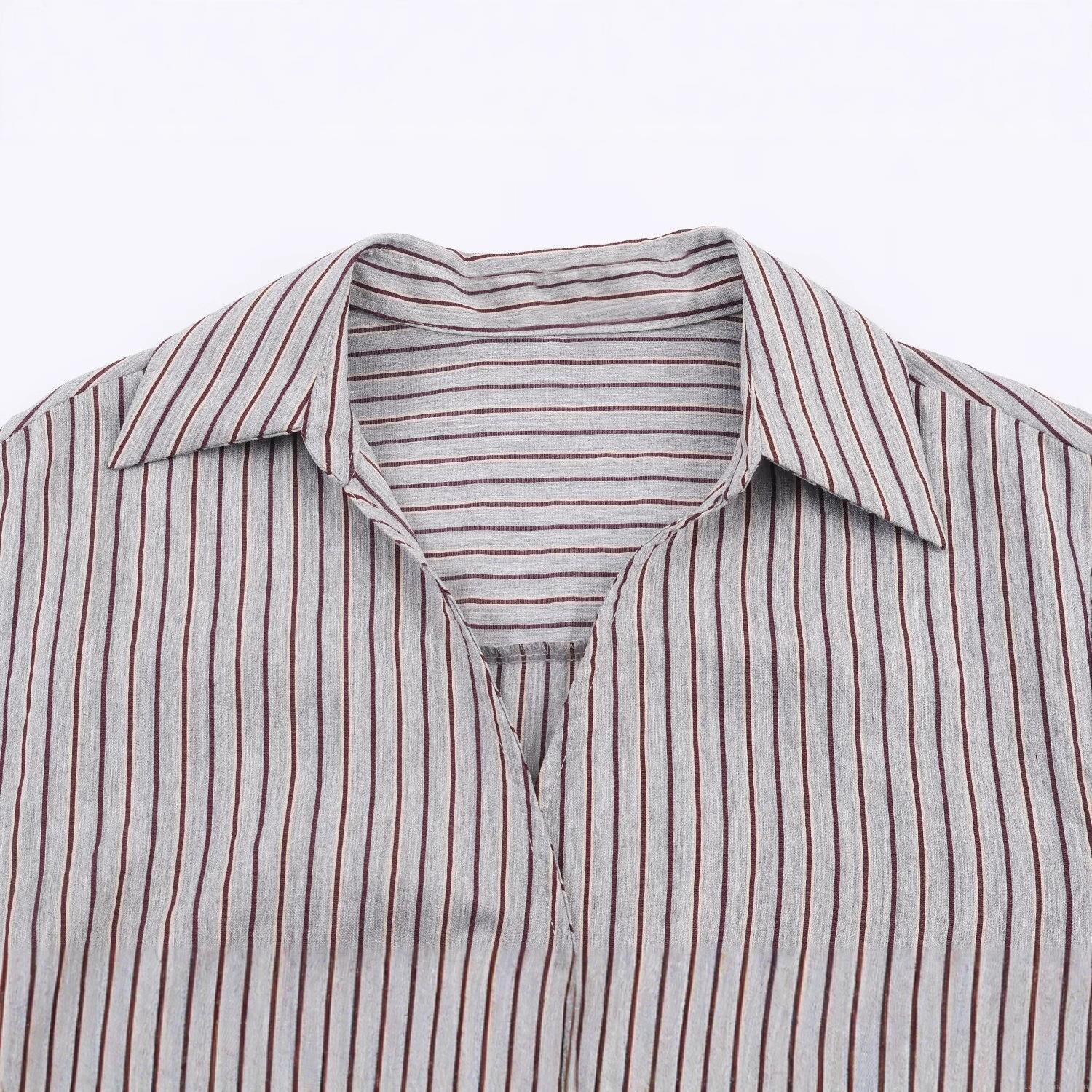 • Women's Striped Long Sleeve Blouse Lace-up Drawstring V-Neck Shirt Casual Asymmetric Hem Polyester Top for Daily Commute Western Street Style