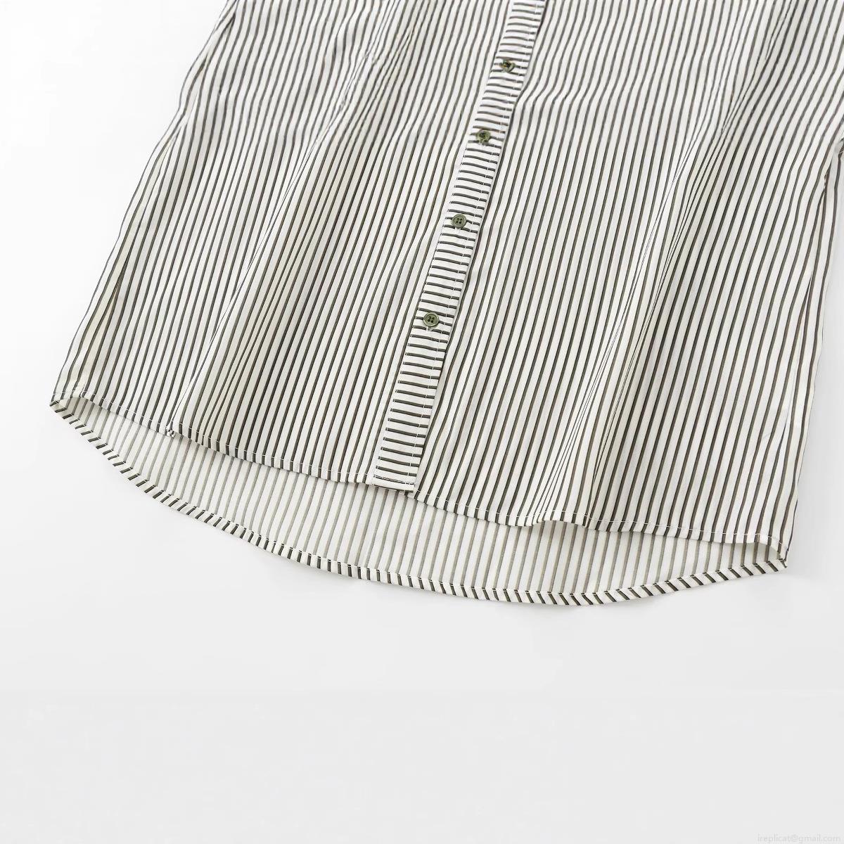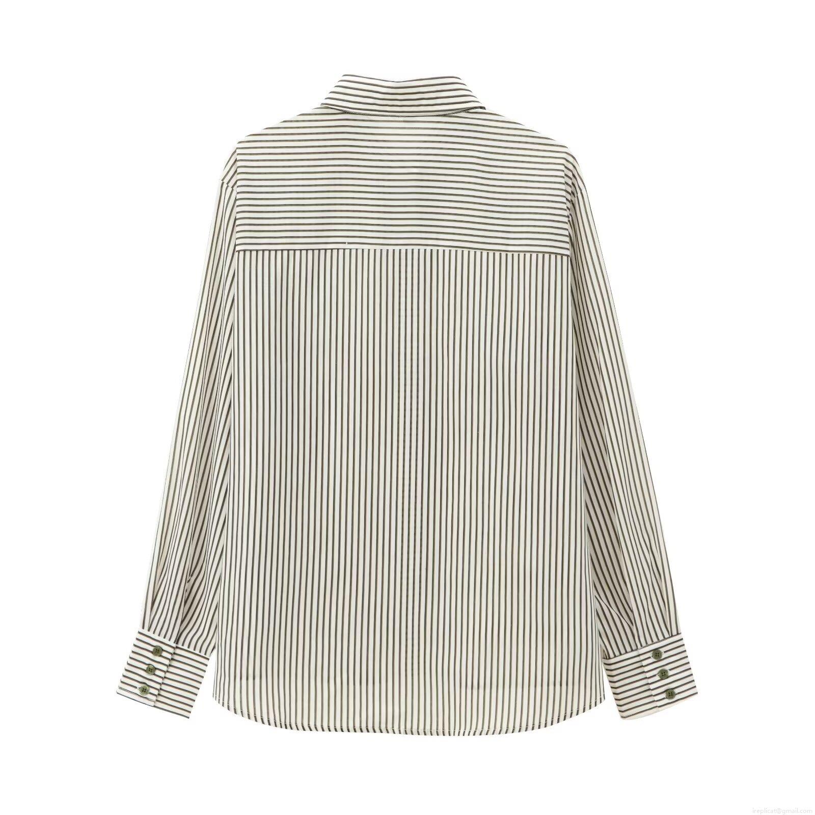 • Women's Striped Long Sleeve Blouse Shirt Polyester Lapel Single Breasted Draped Top For Office Daily Wear Casual Temperament Elegant Fashion Apparel