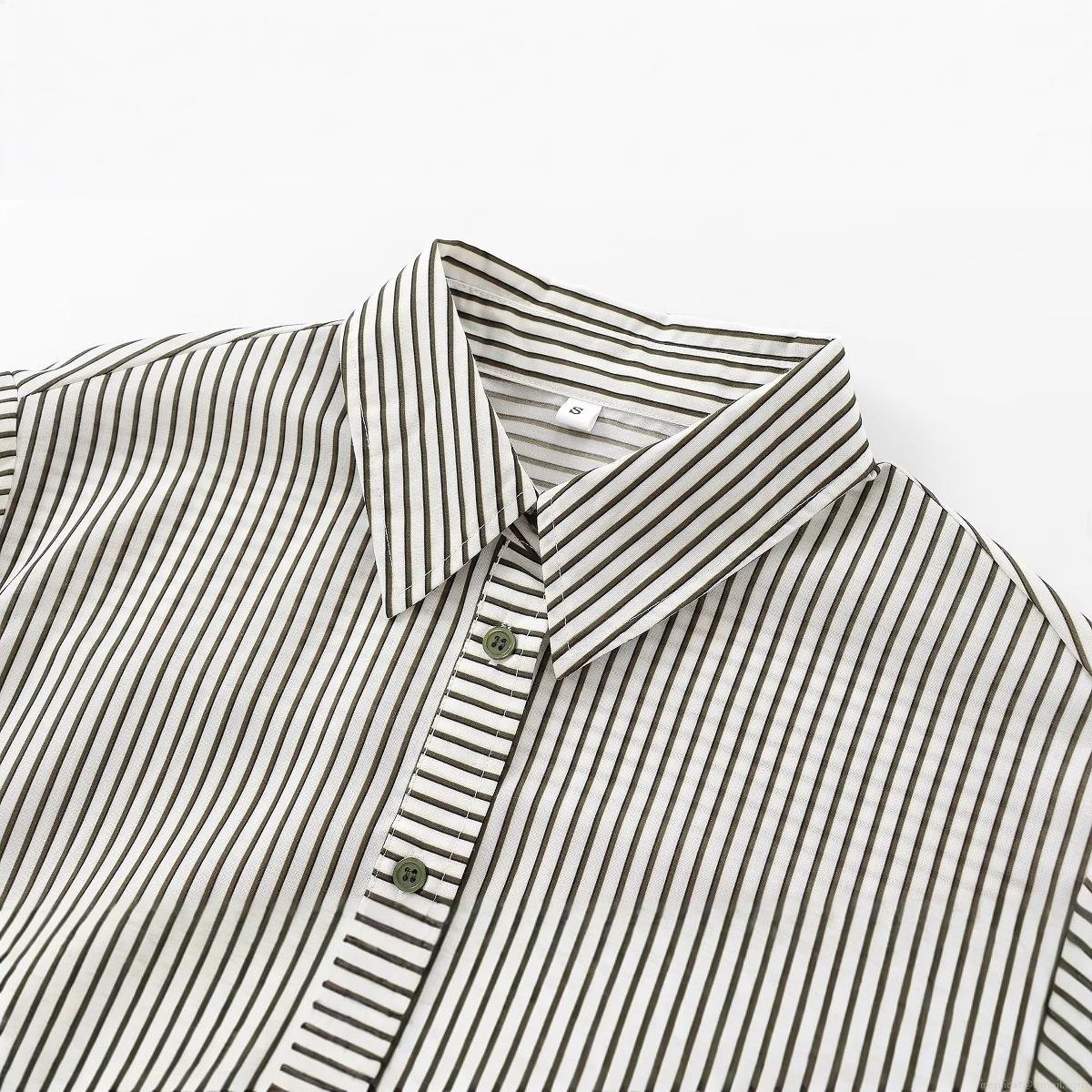 Women's Striped Long Sleeve Blouse Shirt Polyester Lapel Single Breasted Draped Top For Office Daily Wear Casual Temperament Elegant Fashion Apparel