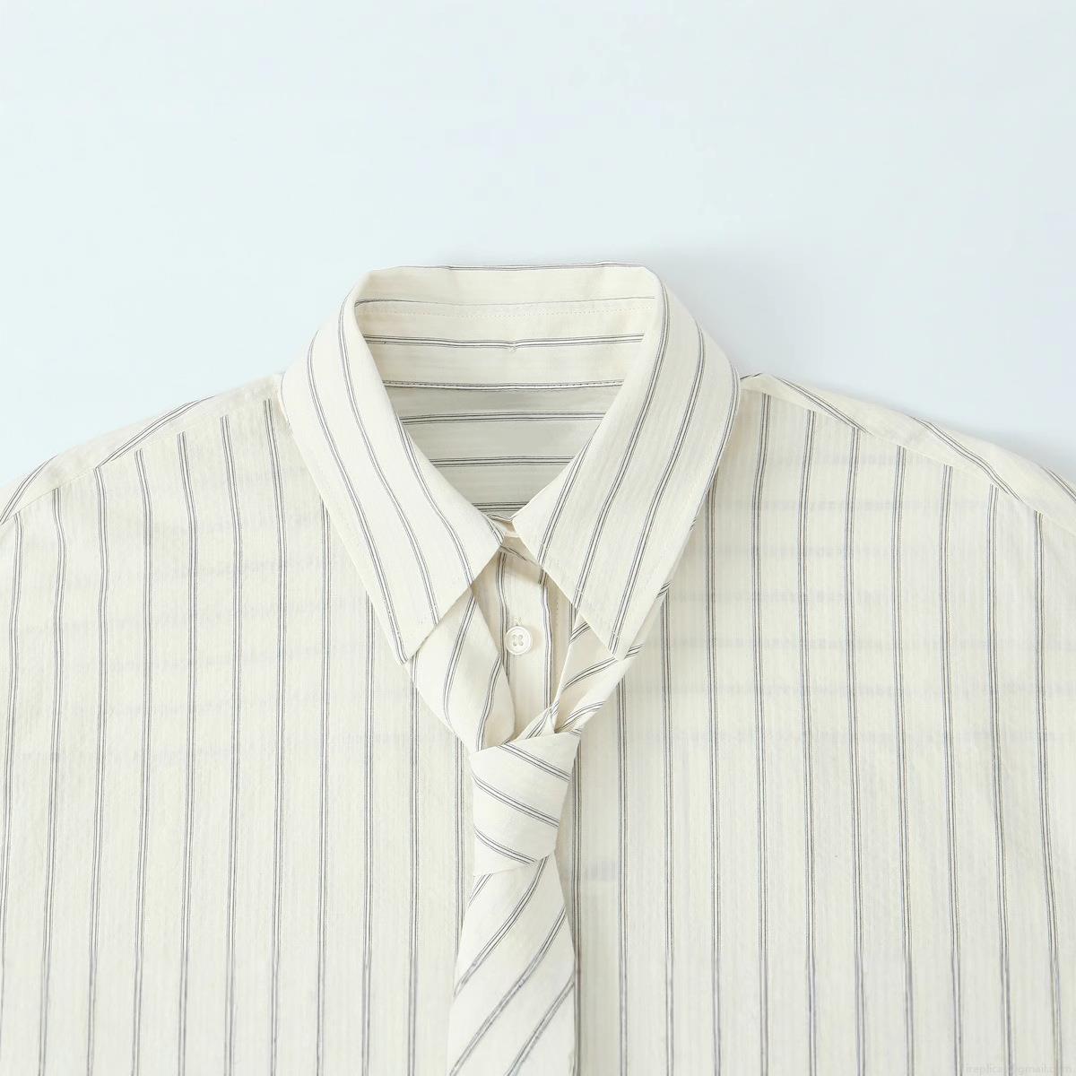 • Women's Striped Long Sleeve Blouse With Tie Elegant Polyester Cotton Blend Loose Fit Button Down Shirt For Office Daily Work Wear