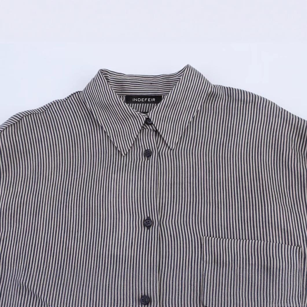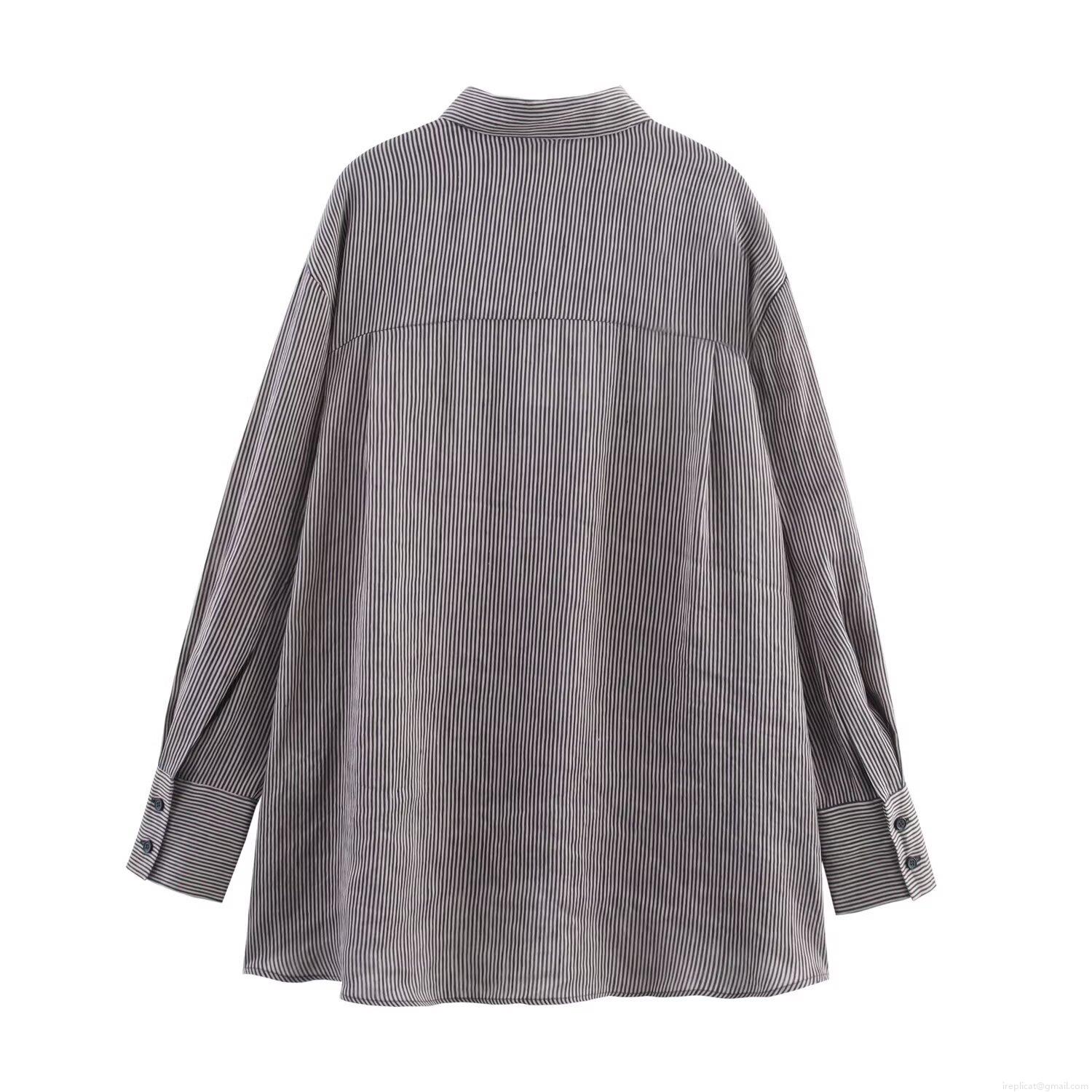 • Women's Striped Long Sleeve Button Down Shirt Casual Linen Blend Blouse With Front Pocket Lapel Collar Classic Striped Top For Office Lady Daily Wear