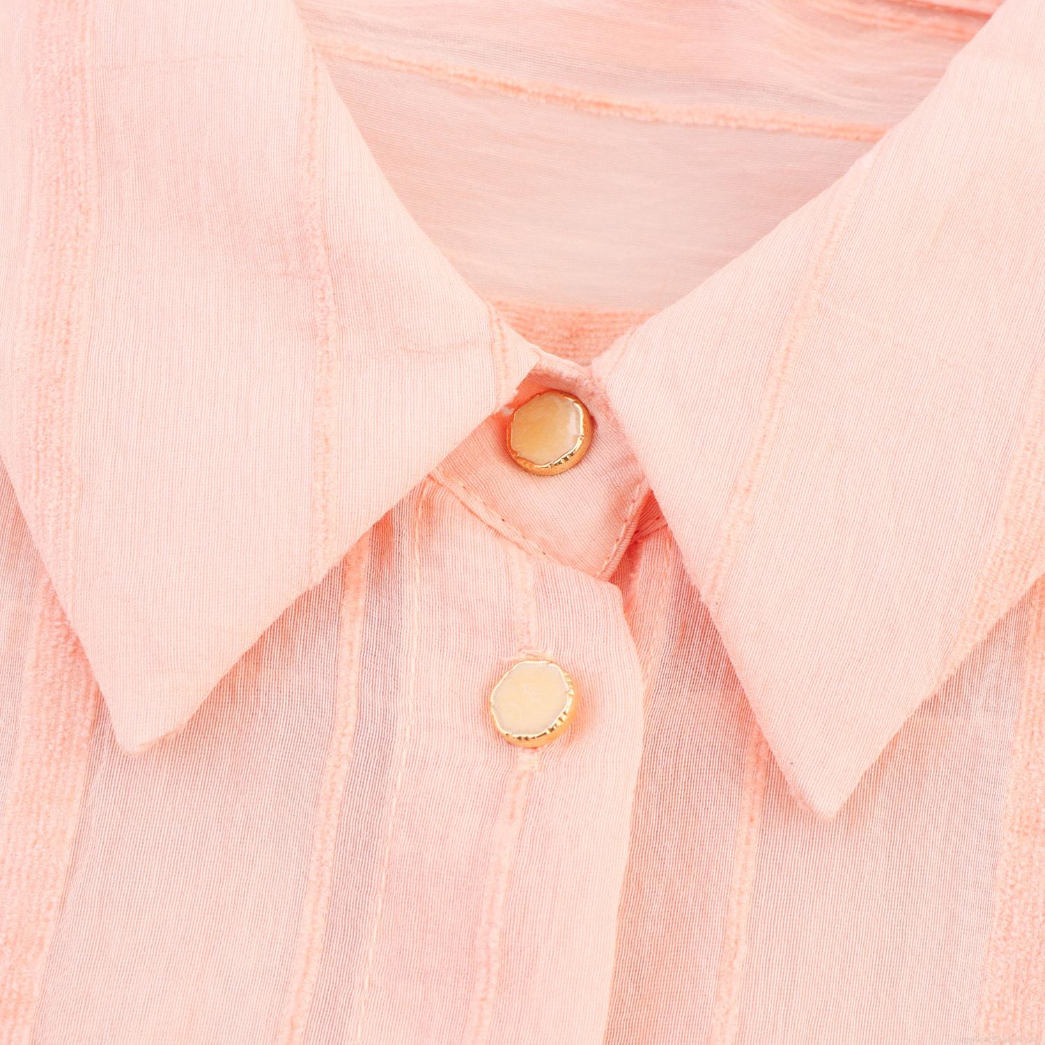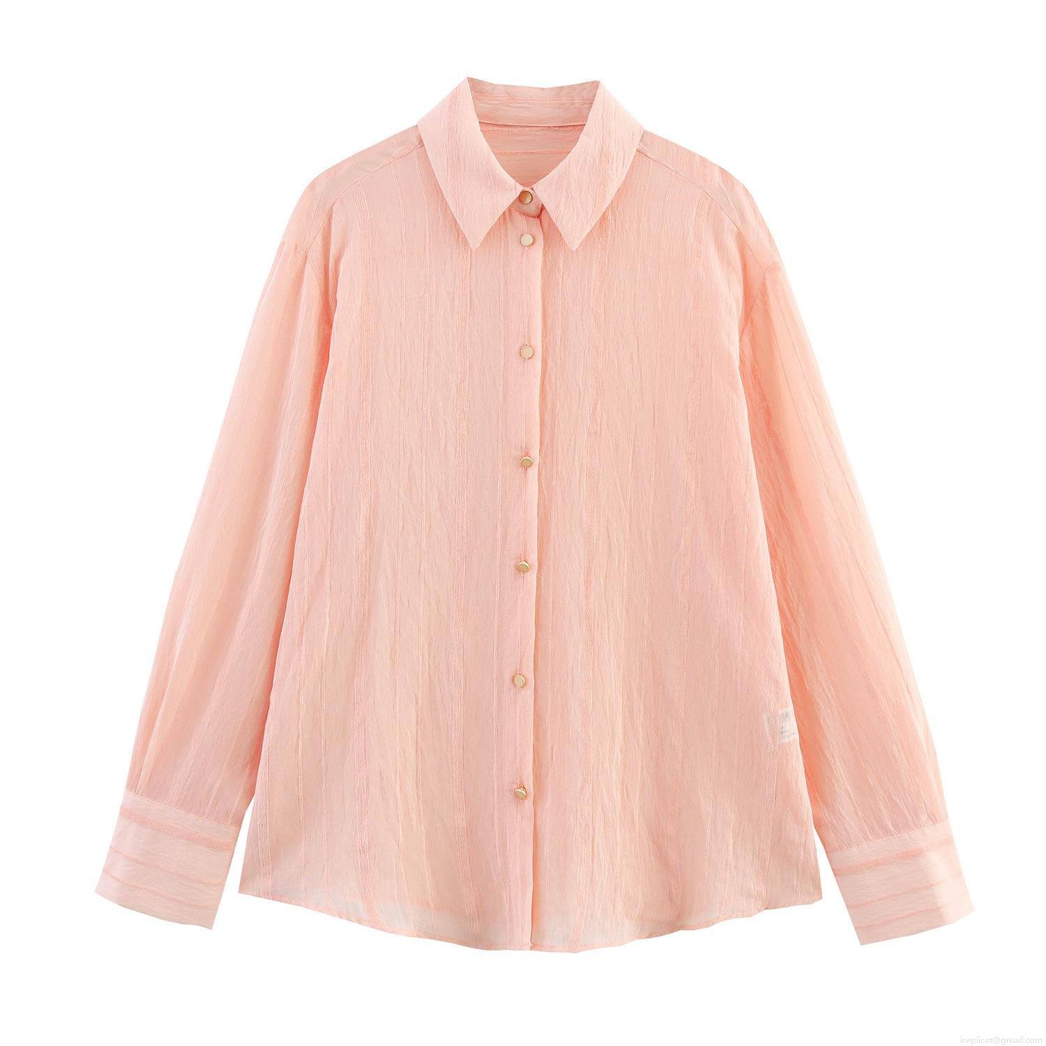 Women's Striped Long Sleeve Button Down Shirt Polyester Lapel Loose Casual Pink Blouse Top For Spring Summer Fashion Sweet Textured Fabric Ladies Clothing