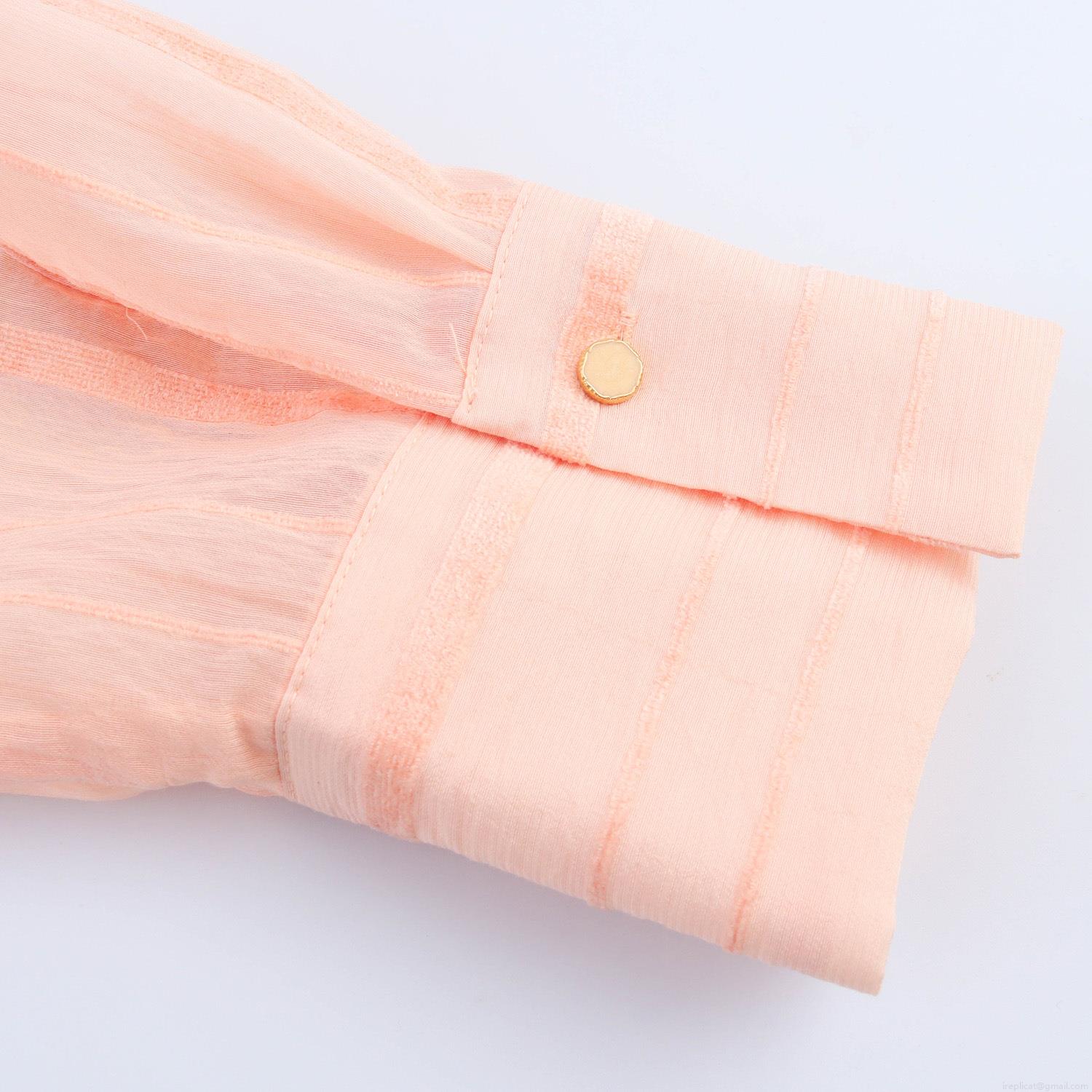 • Women's Striped Long Sleeve Button Down Shirt Polyester Lapel Loose Casual Pink Blouse Top For Spring Summer Fashion Sweet Textured Fabric Ladies Clothing