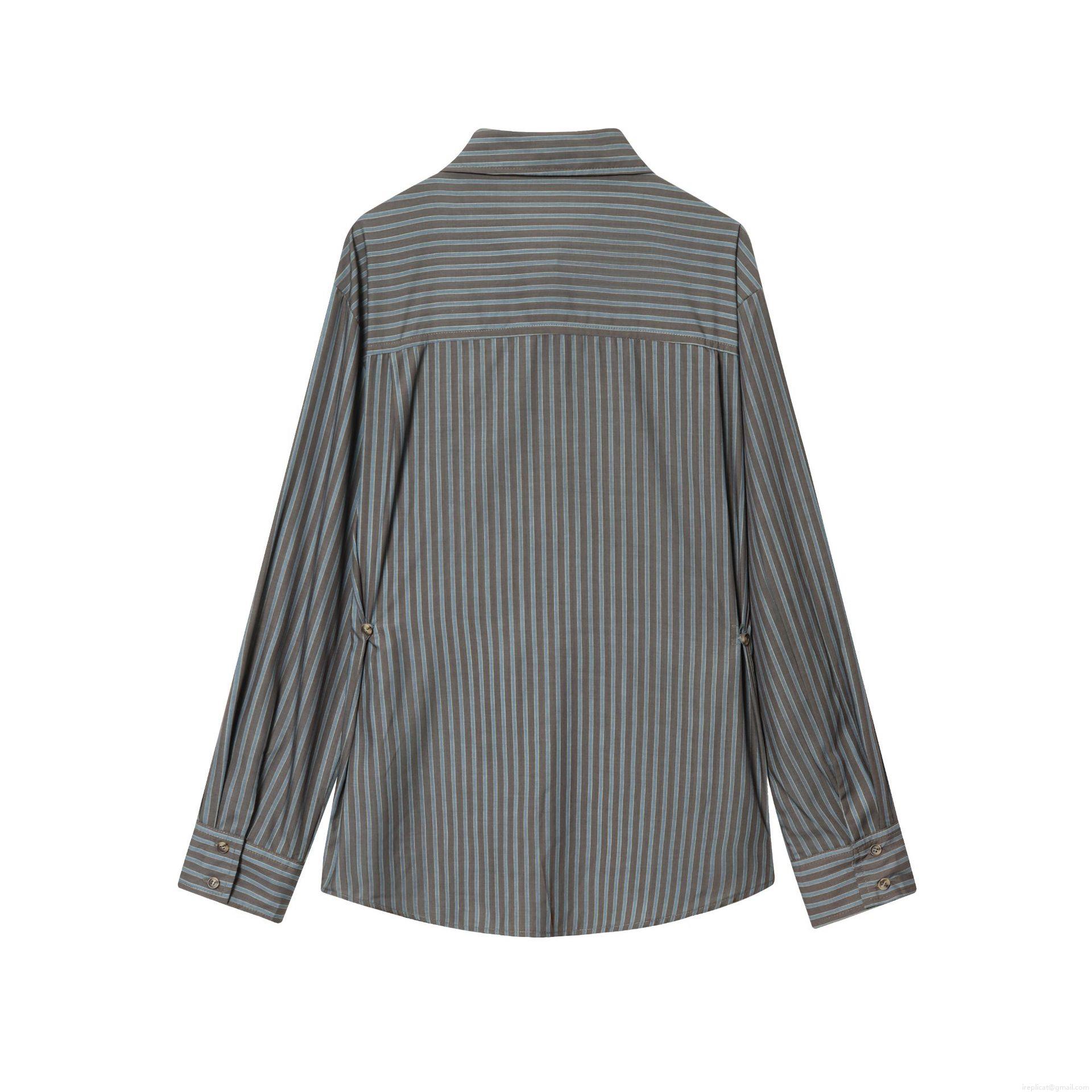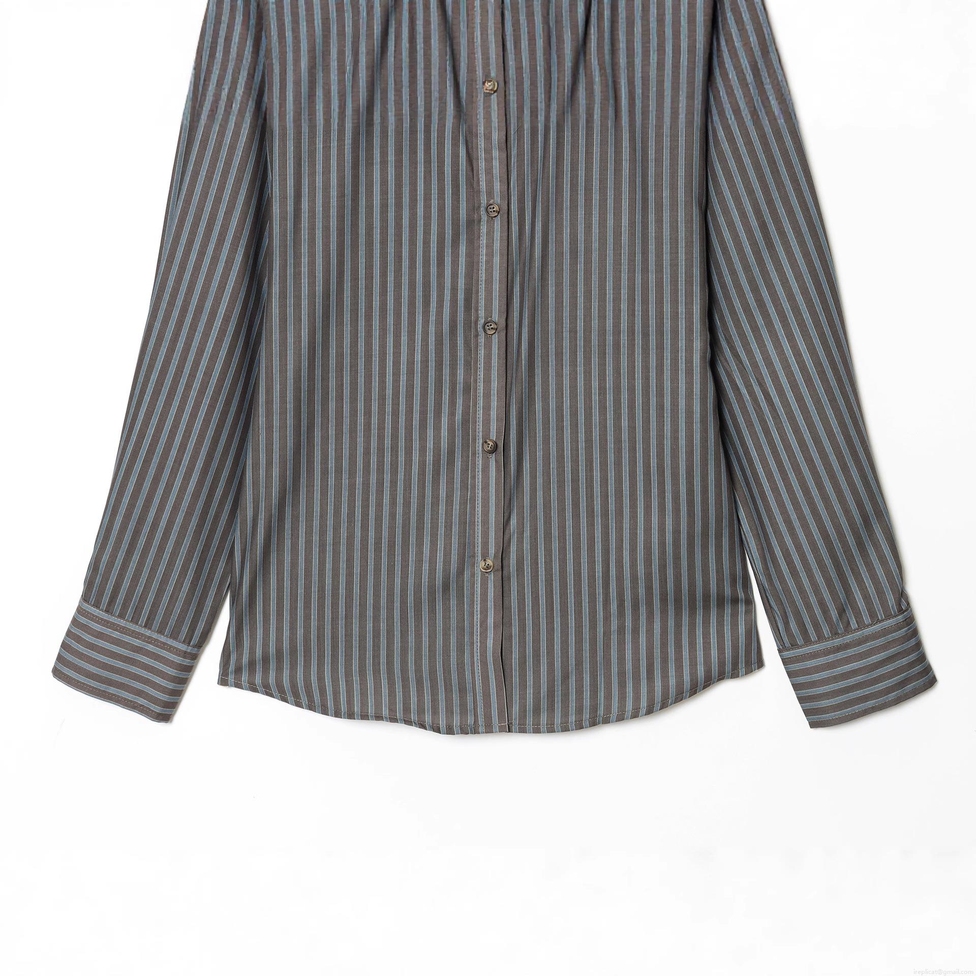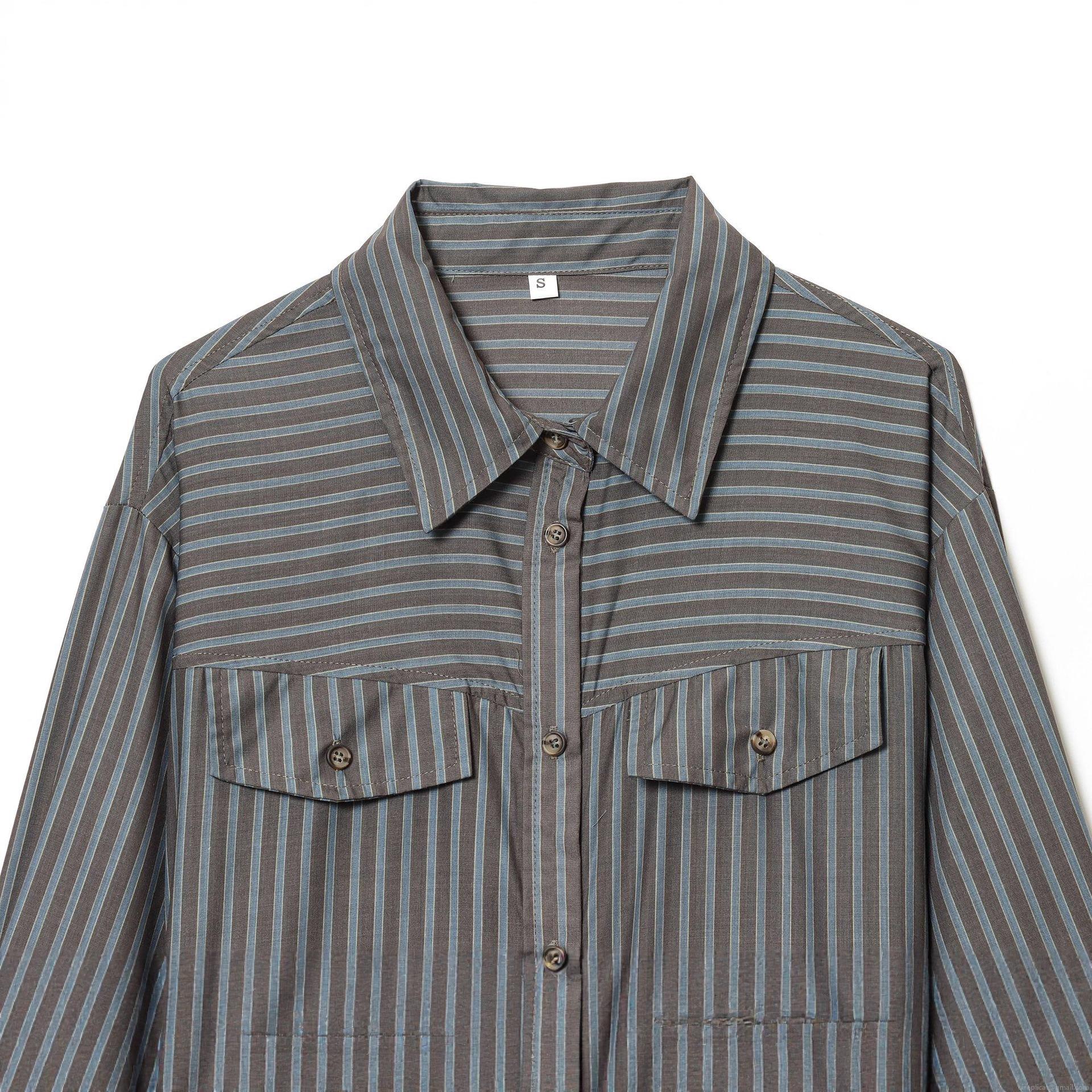 • Women's Striped Long Sleeve Button Up Shirt Polyester Cotton Blend Poplin Blouse With Double Pockets Casual Lapel Fashion Tops For Daily Office Streetwear