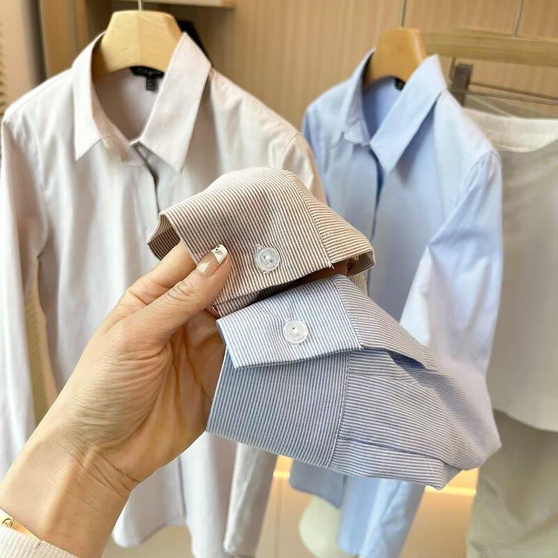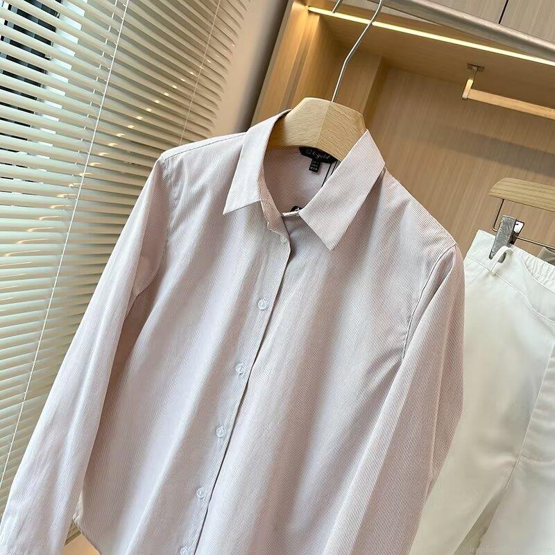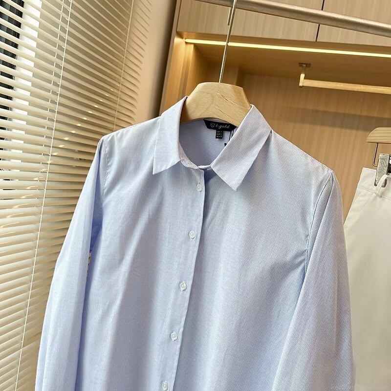• Women's Striped Long Sleeve Cotton Blend Shirt Turn-down Collar Single Breasted Casual Blouse Soft Breathable Streetwear Top For Spring Autumn