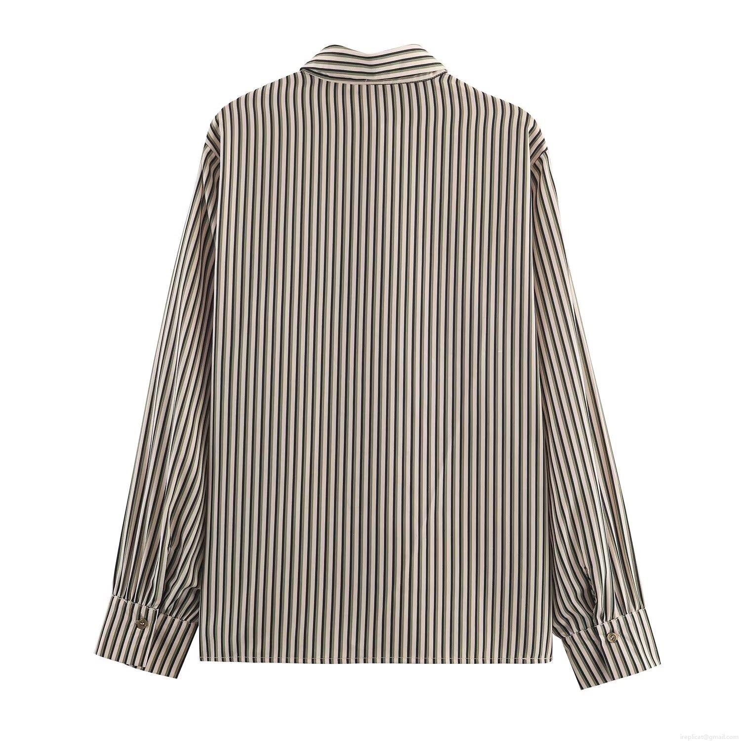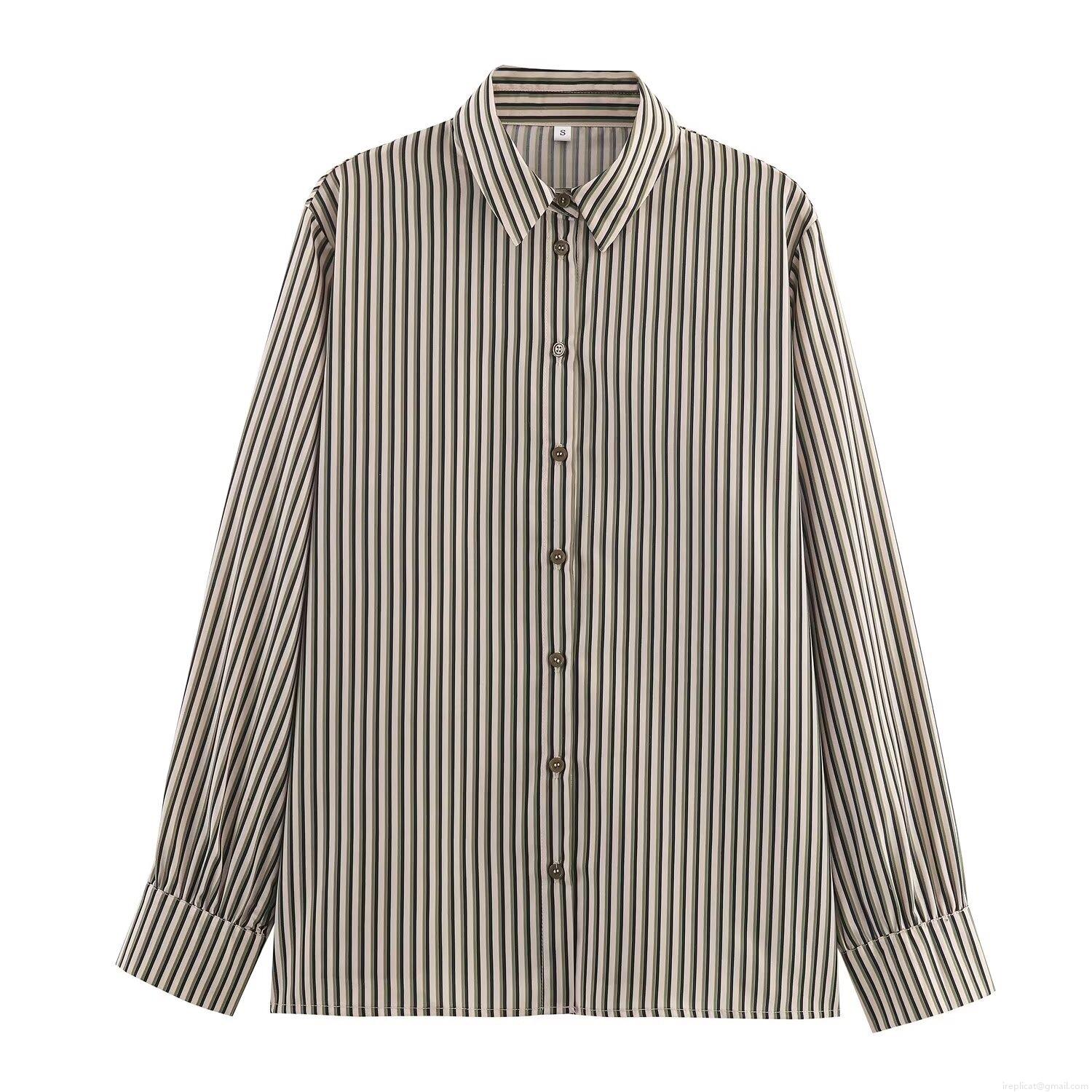 • Women's Striped Long Sleeve Shirt Casual Loose Lapel Button Down Blouse Polyester Cotton Striped Top For Daily Office Work
