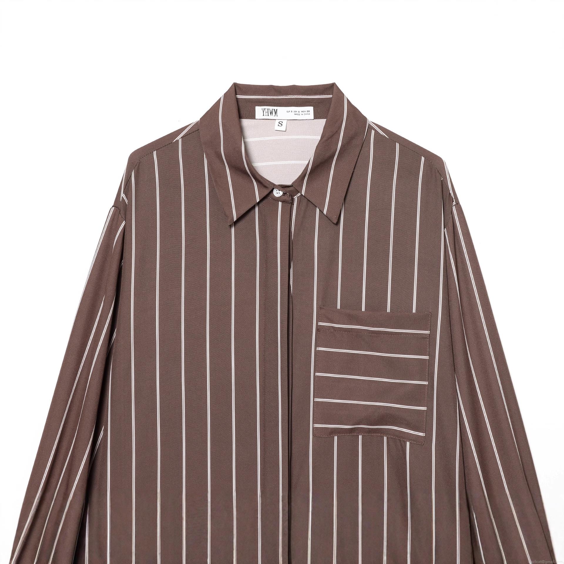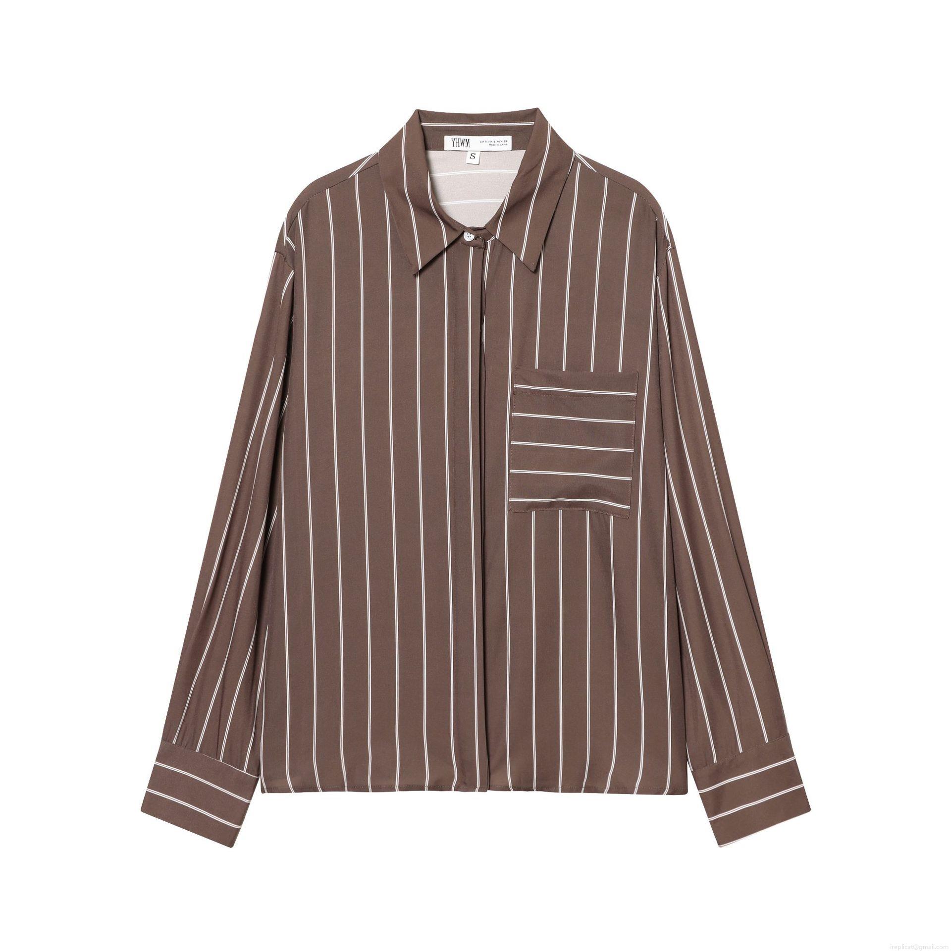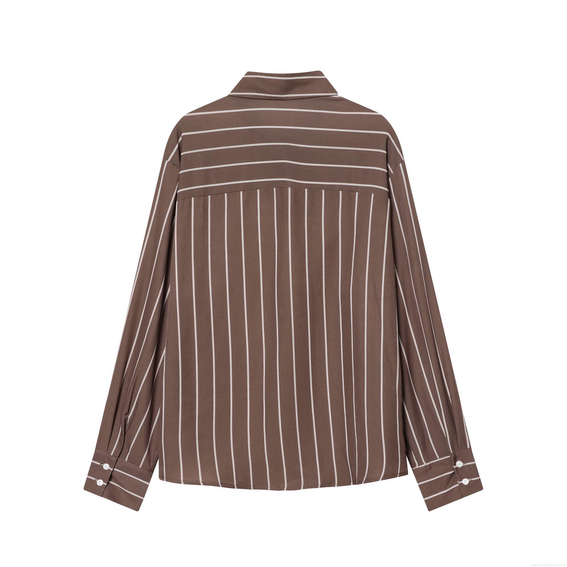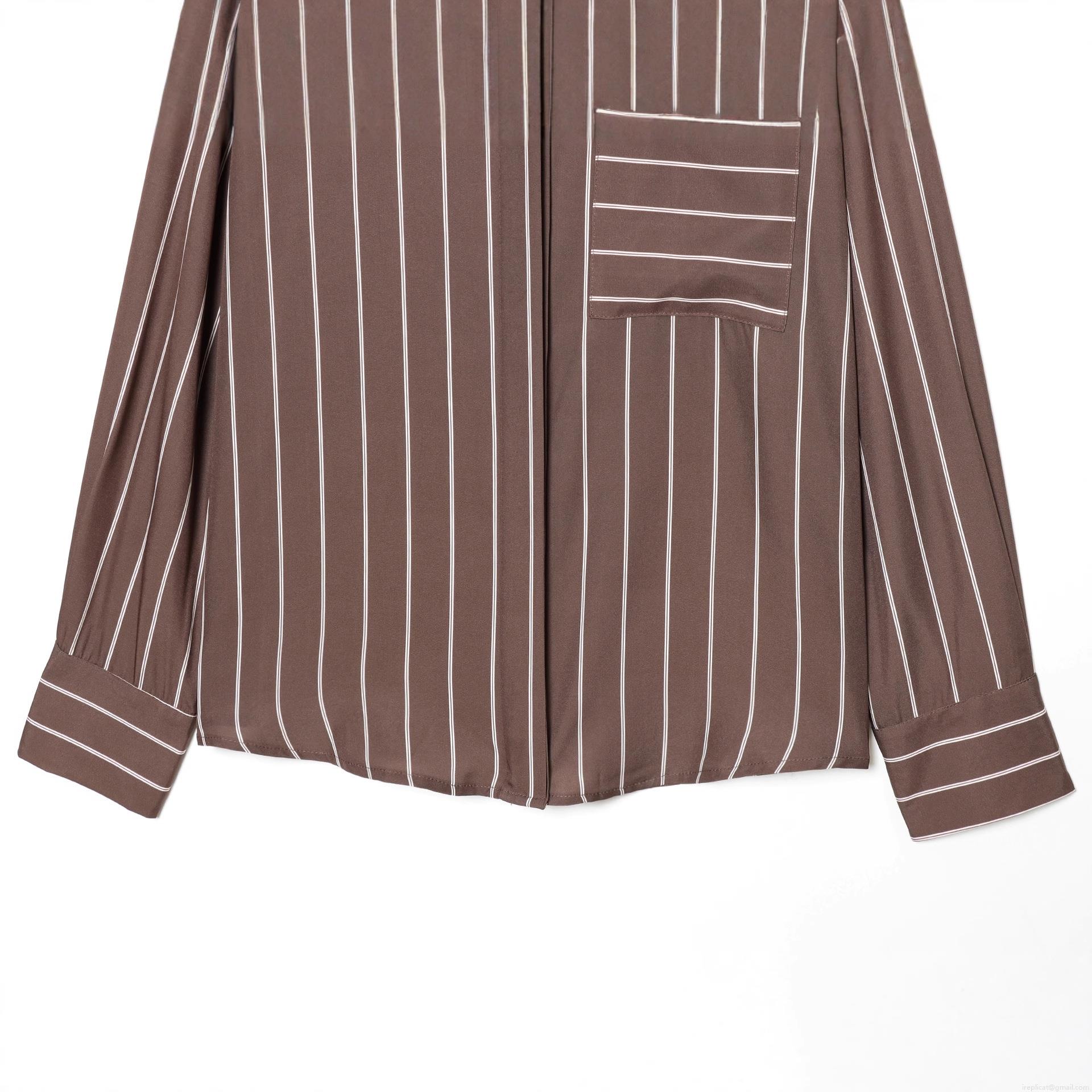 • Women's Striped Long Sleeve Shirt Polyester 4-Way Stretch Casual Office Blouse With Pocket Button Down Top For Autumn Winter