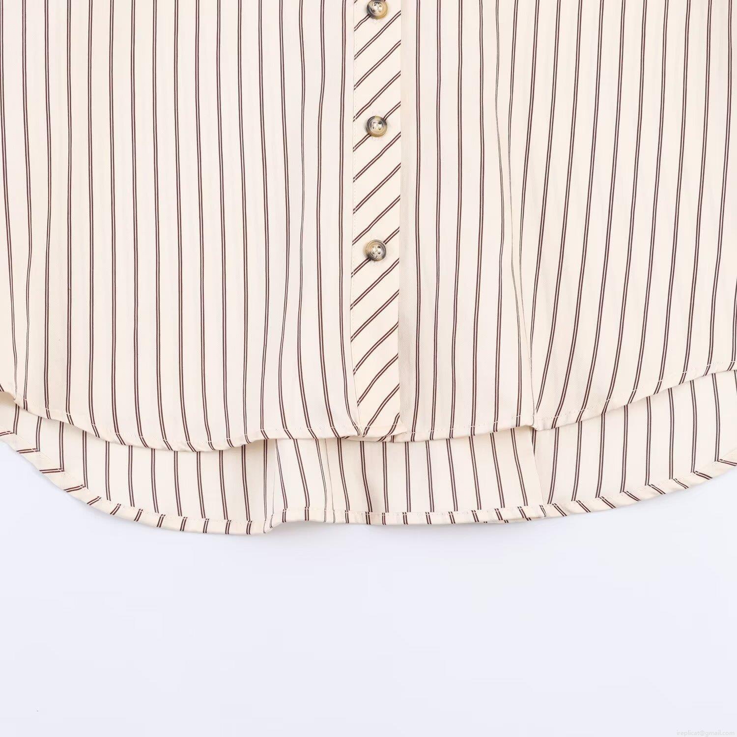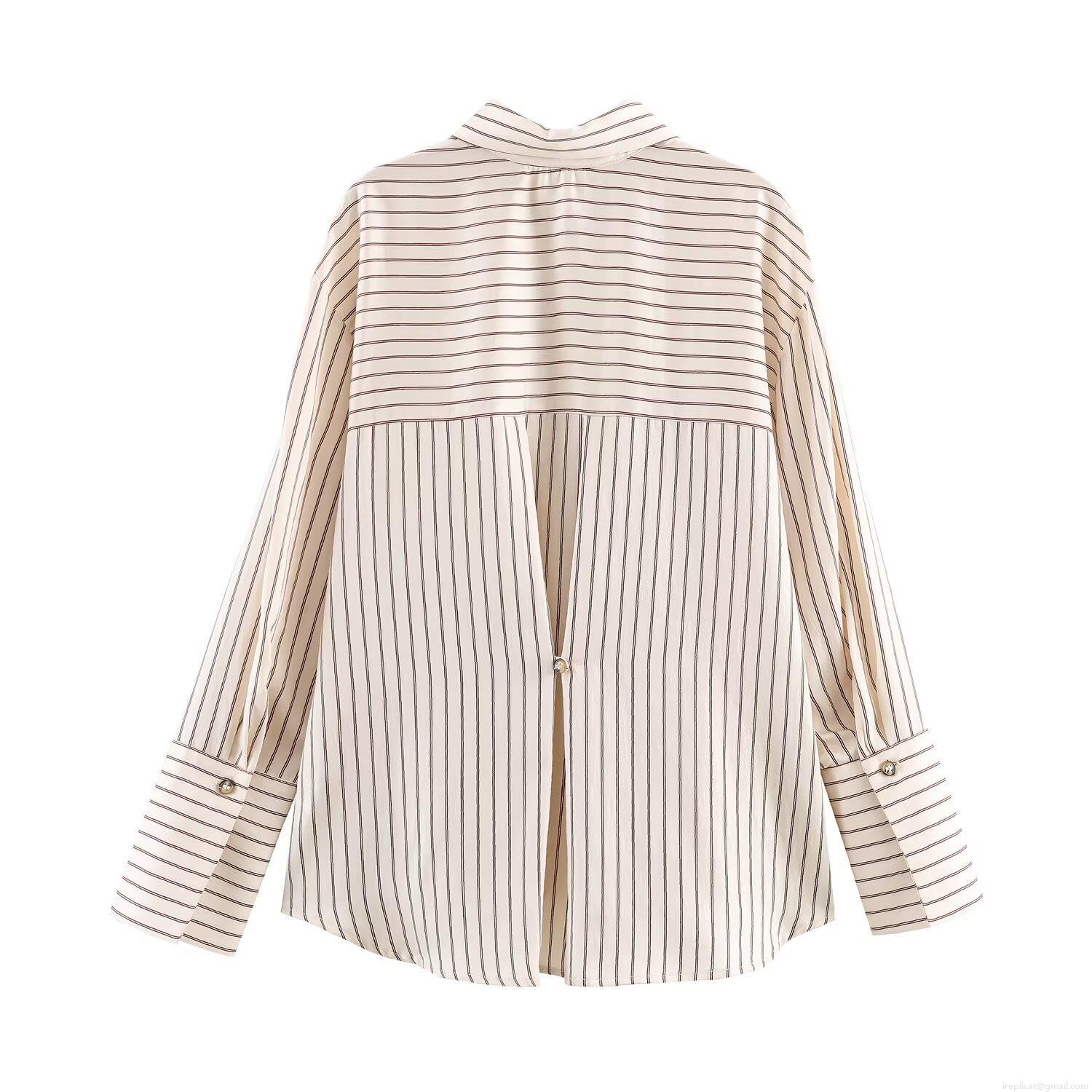 • Women's Striped Loose Cuff Shirt Casual Long Sleeve Polyester Woven Blouse Elegant Button Up Fashion Top For Daily Office Travel Wear Women Clothing