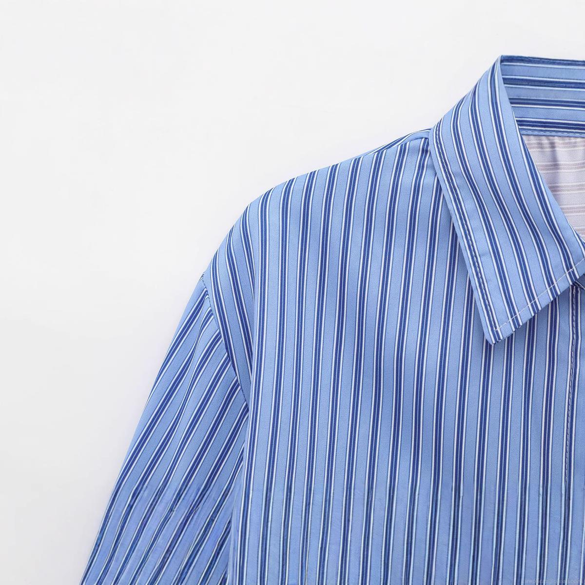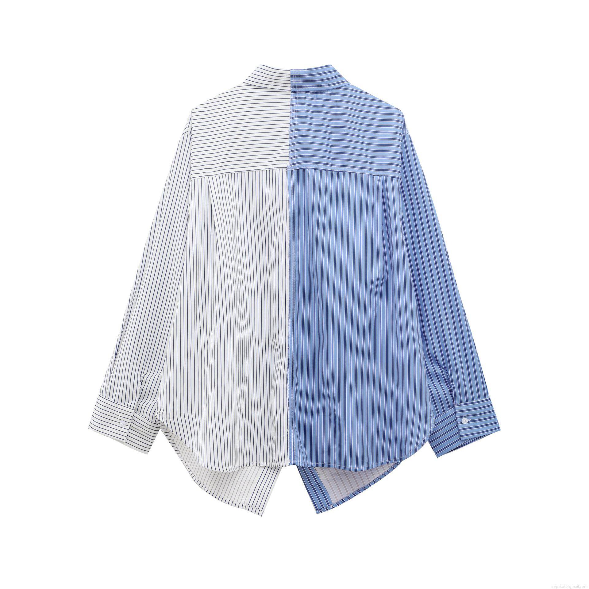 Women's Striped Patchwork Long Sleeve Shirt Asymmetric Polyester Blouse Casual Lapel Single Breasted Streetwear Top For Women