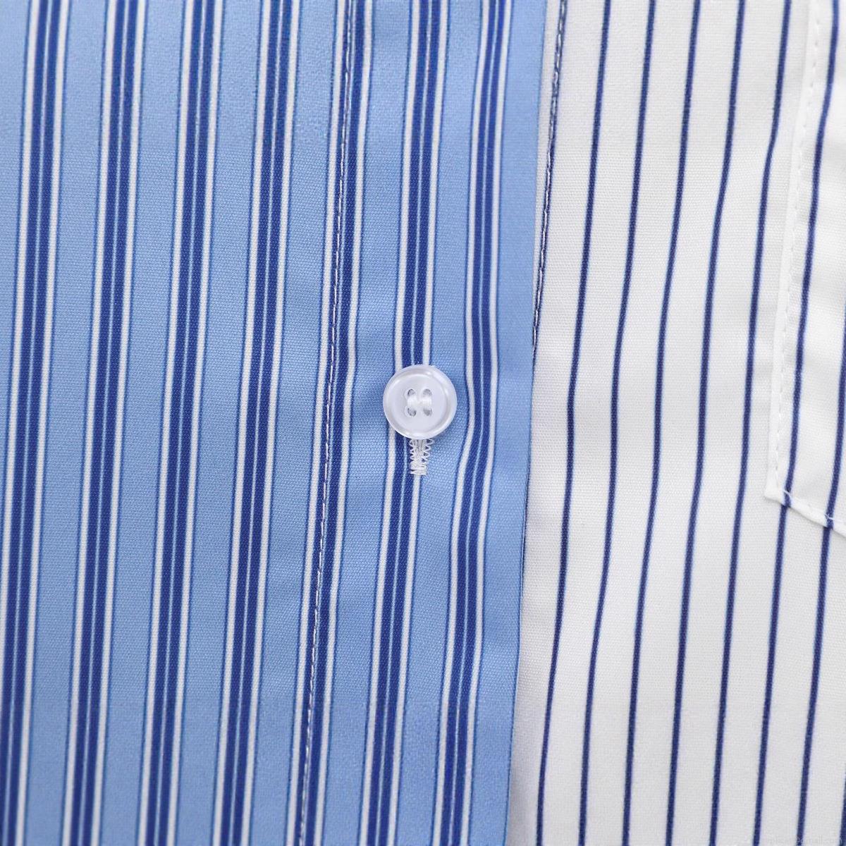 • Women's Striped Patchwork Long Sleeve Shirt Asymmetric Polyester Blouse Casual Lapel Single Breasted Streetwear Top For Women