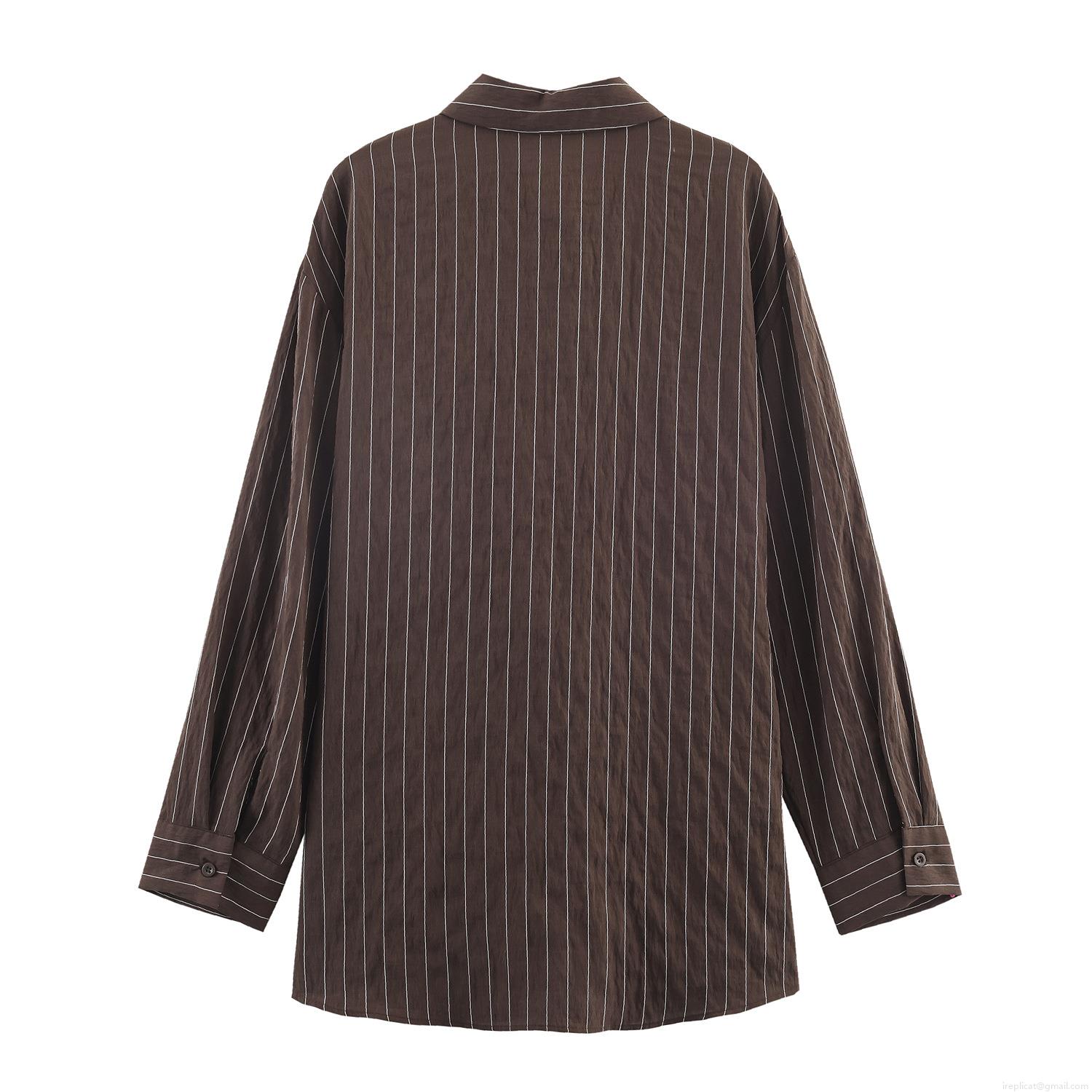 • Women's Striped Poplin Shirt With Side Buckle Straps Long Sleeve Lapel Collar Hidden Button Casual Loose Blouse For Ladies Autumn Fashion