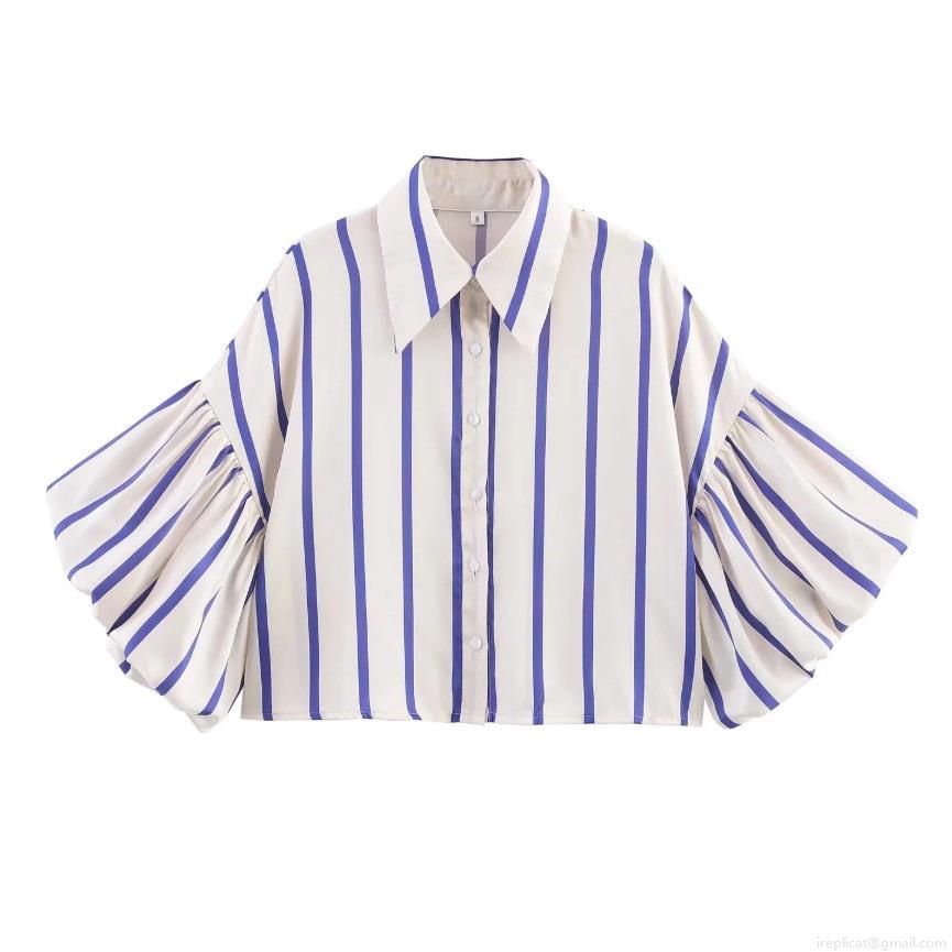 • Women's Striped Puff Sleeve Blouse 100% Polyester Short Lantern Sleeve Button Down Casual Shirt Tops For Women Summer Fashion