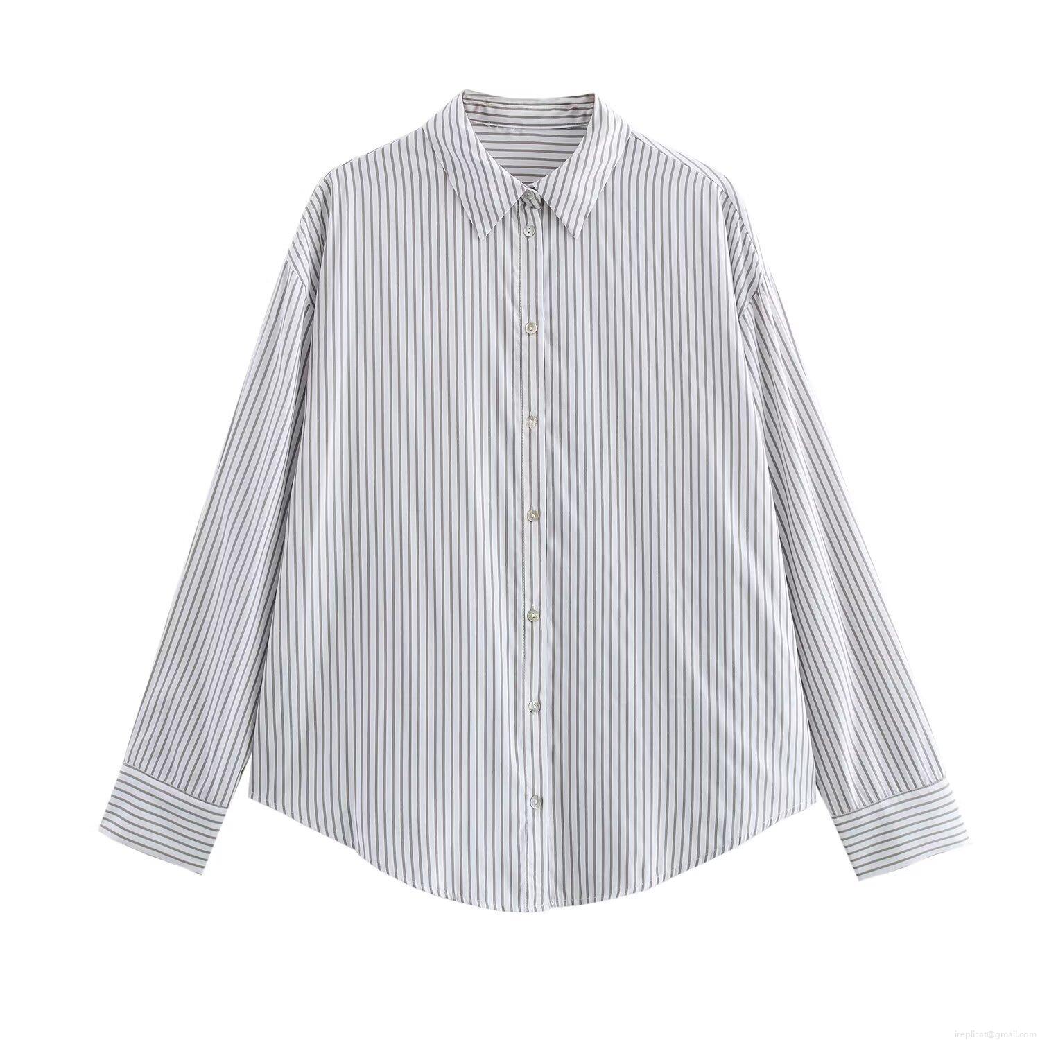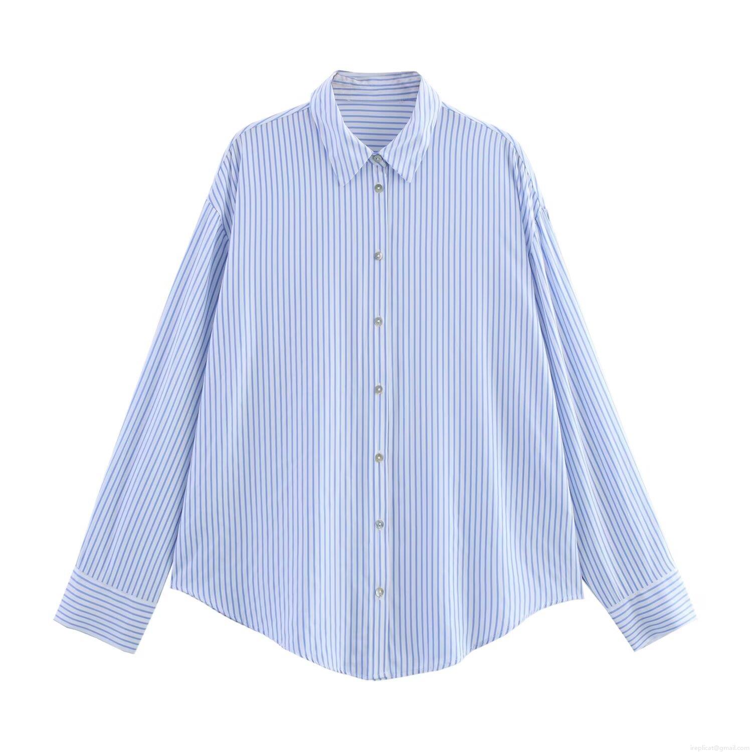 • Women's Striped Satin Blouse Loose Fit Long Sleeve Button Up Shirt Casual Lapel Top For Women Spring Autumn Streetwear Outerwear