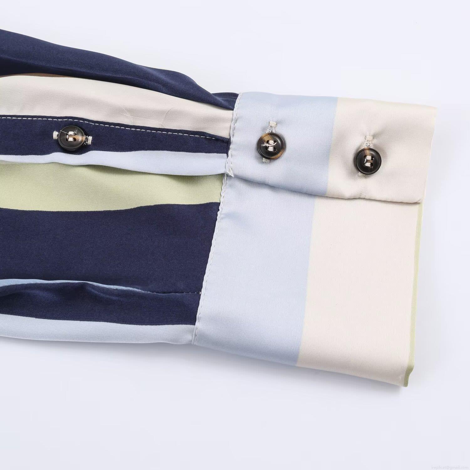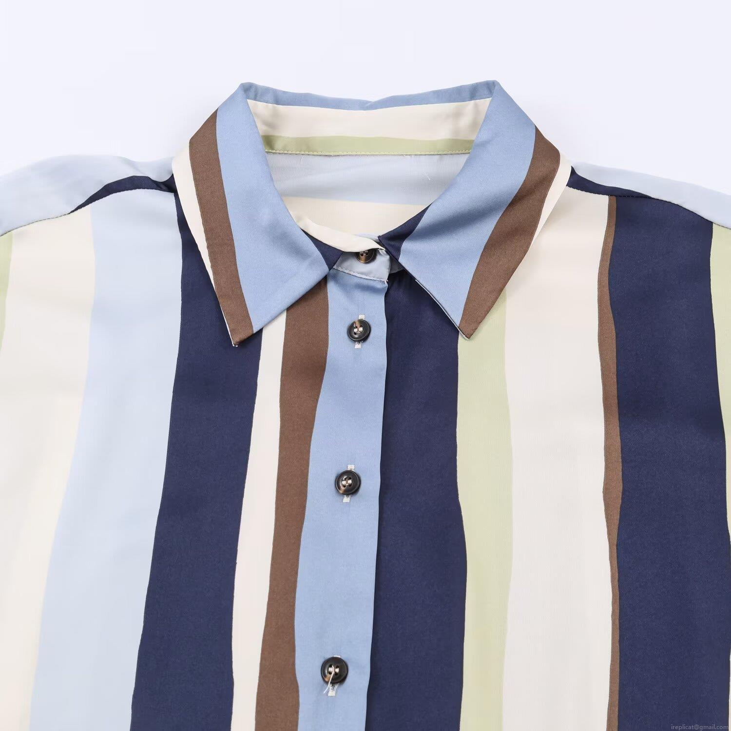 • Women's Striped Satin Texture Blouse Loose Long Sleeve Single Breasted Shirt Turn-down Collar Top for Casual Office Daily Wear