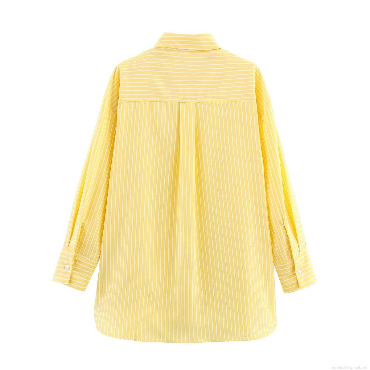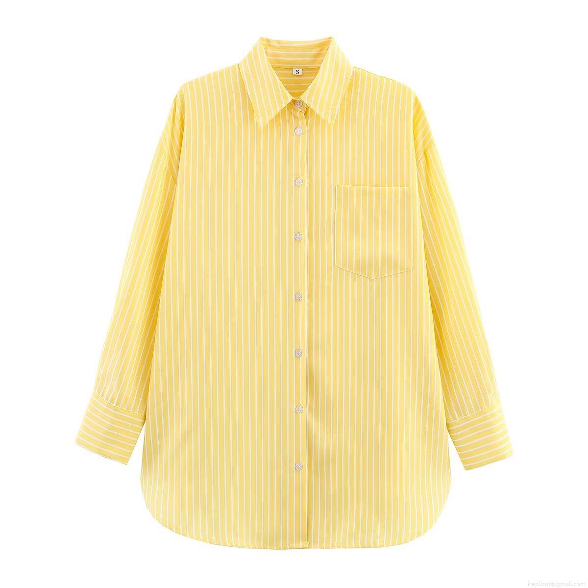 Women's Striped Shirt 100% Polyester Long Sleeve Lapel Single-Breasted Loose Blouse Casual Top for Daily Streetwear Fashion