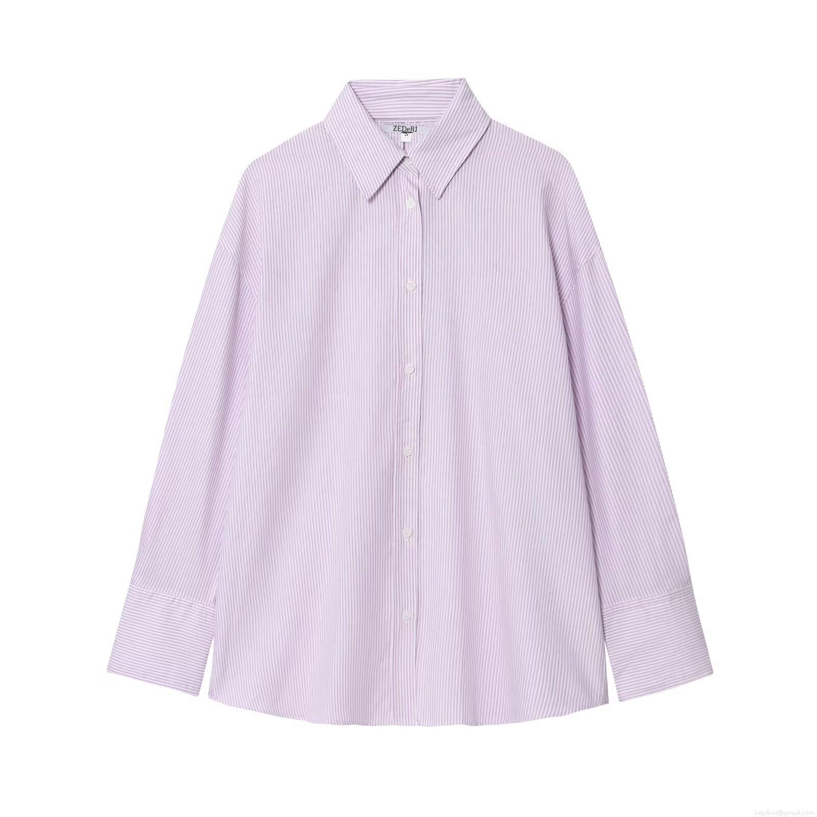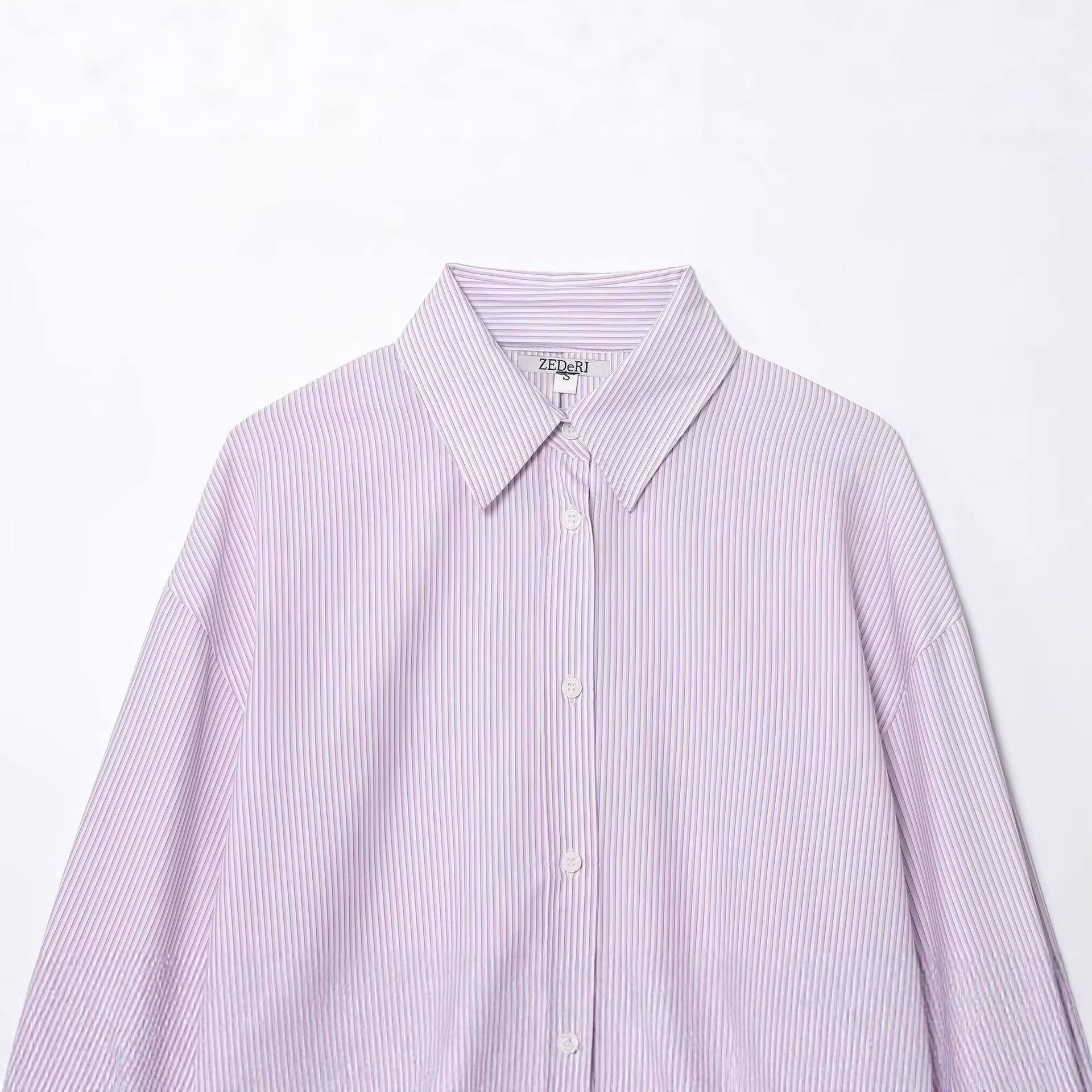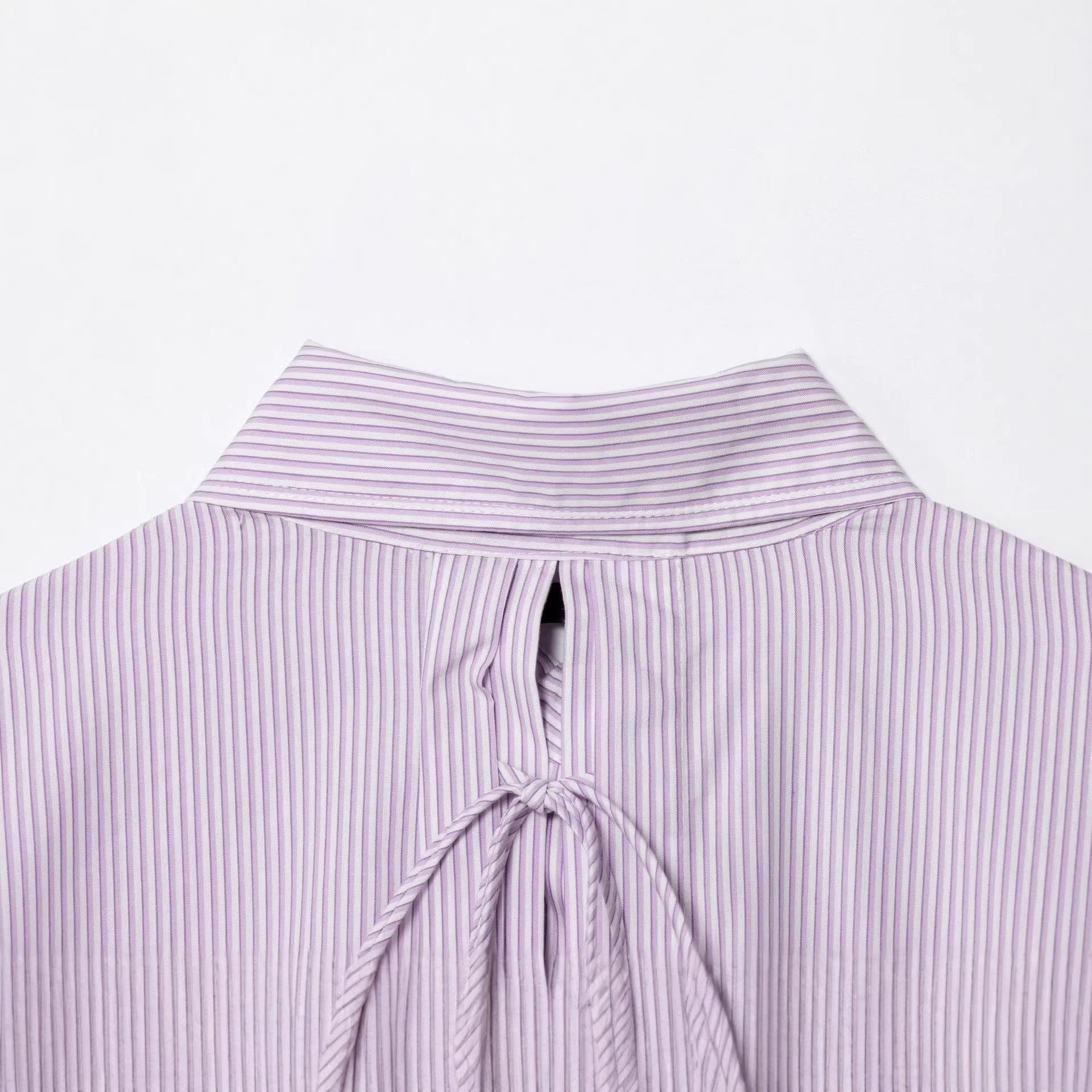 • Women's Striped Shirt Long Sleeve Lapel Collar Back Lace Up Hollow Out Top Casual Button Down Polyester Cotton Blouse Streetwear For Women Ladies