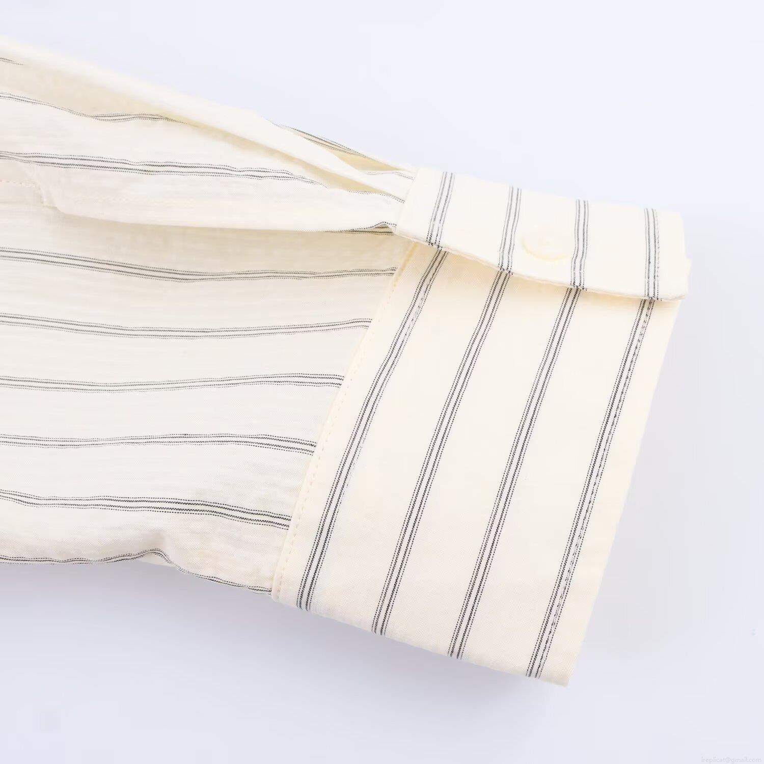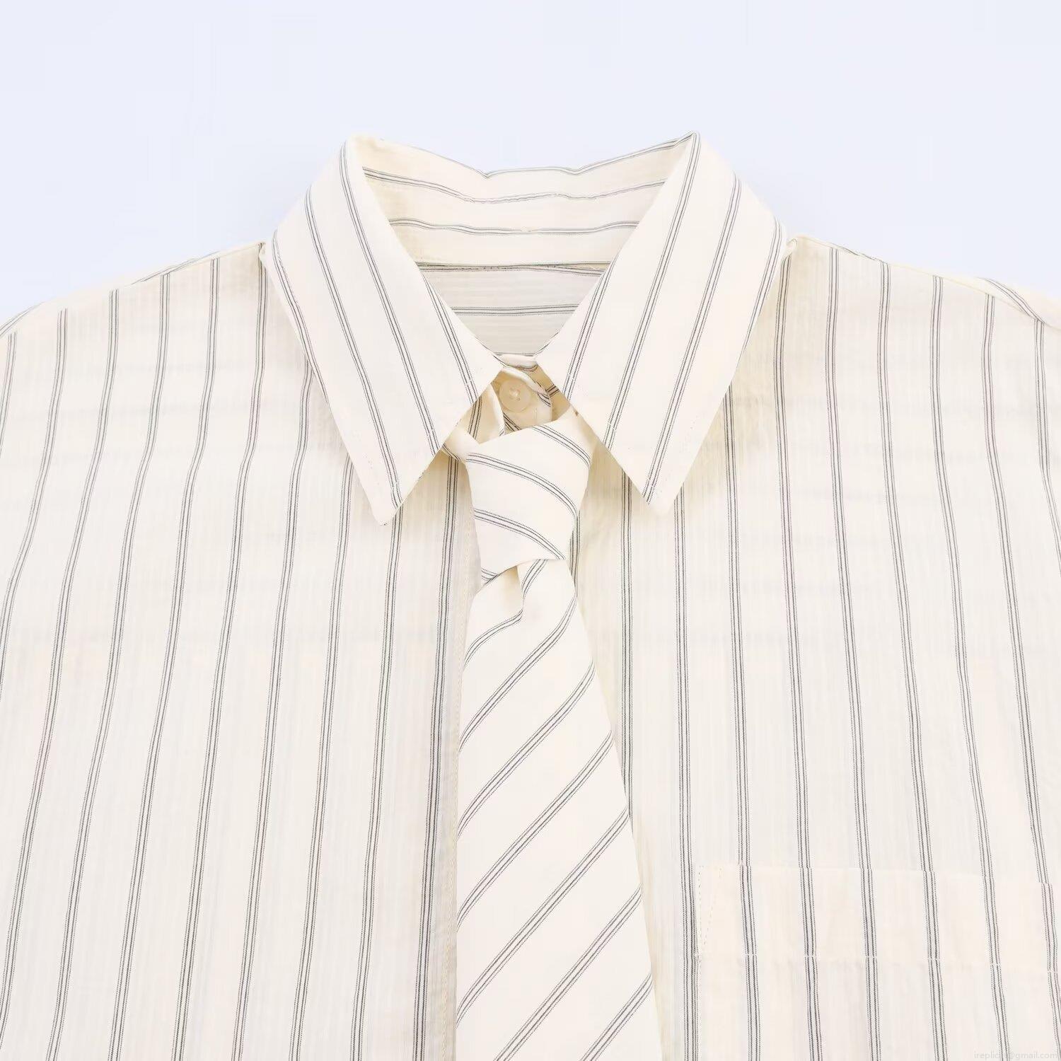 Women's Striped Shirt With Matching Tie Preppy Style Loose Fit Long Sleeve Poplin Blouse Casual Office Workwear Beige Striped Button Up Top