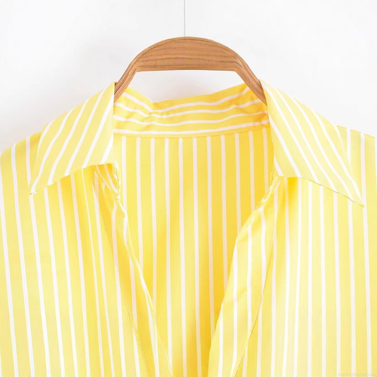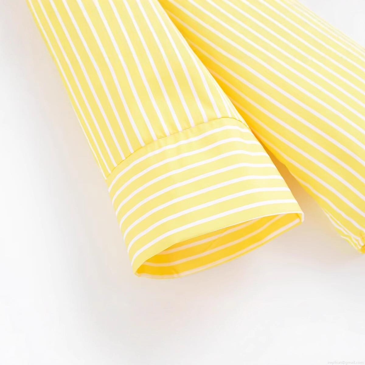 • Women's Striped Shirt Yellow White Vertical Stripes Long Sleeve Blouse With Patchwork Chest Pockets Casual Loose Fit Button Down Top For Fall Streetwear