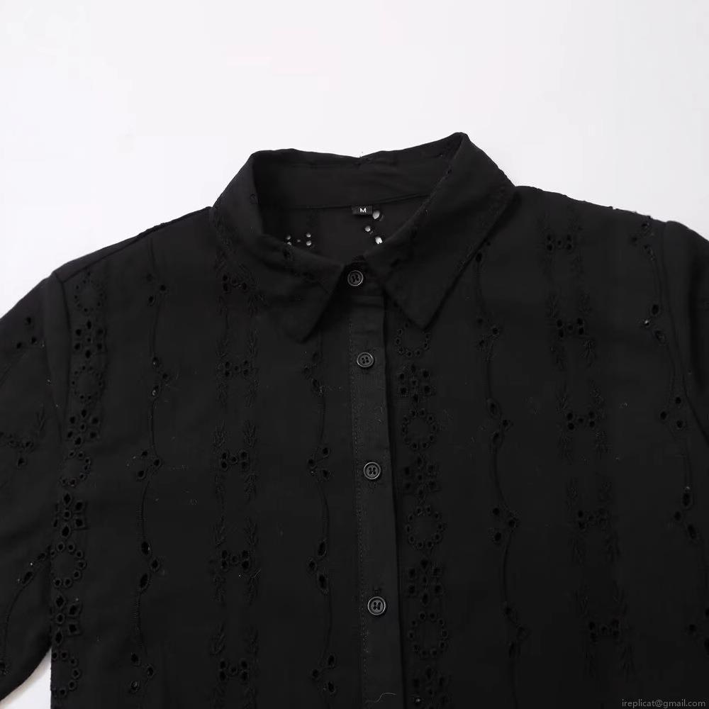 • Women's Summer Casual Long Sleeve Eyelet Embroidery Blouse Shirt With Lace Trim Single Breasted Lapel Cotton Blend Streetwear Tops