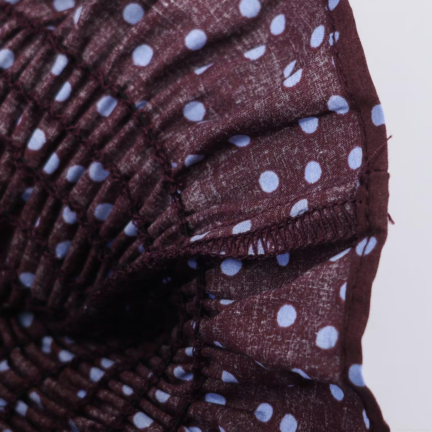 • Women's Summer Polka Dot Blouse Polyester Cotton Smocked Waist Balloon Sleeve Top Casual Ruffle Hem Round Neck Shirts Streetwear For Women