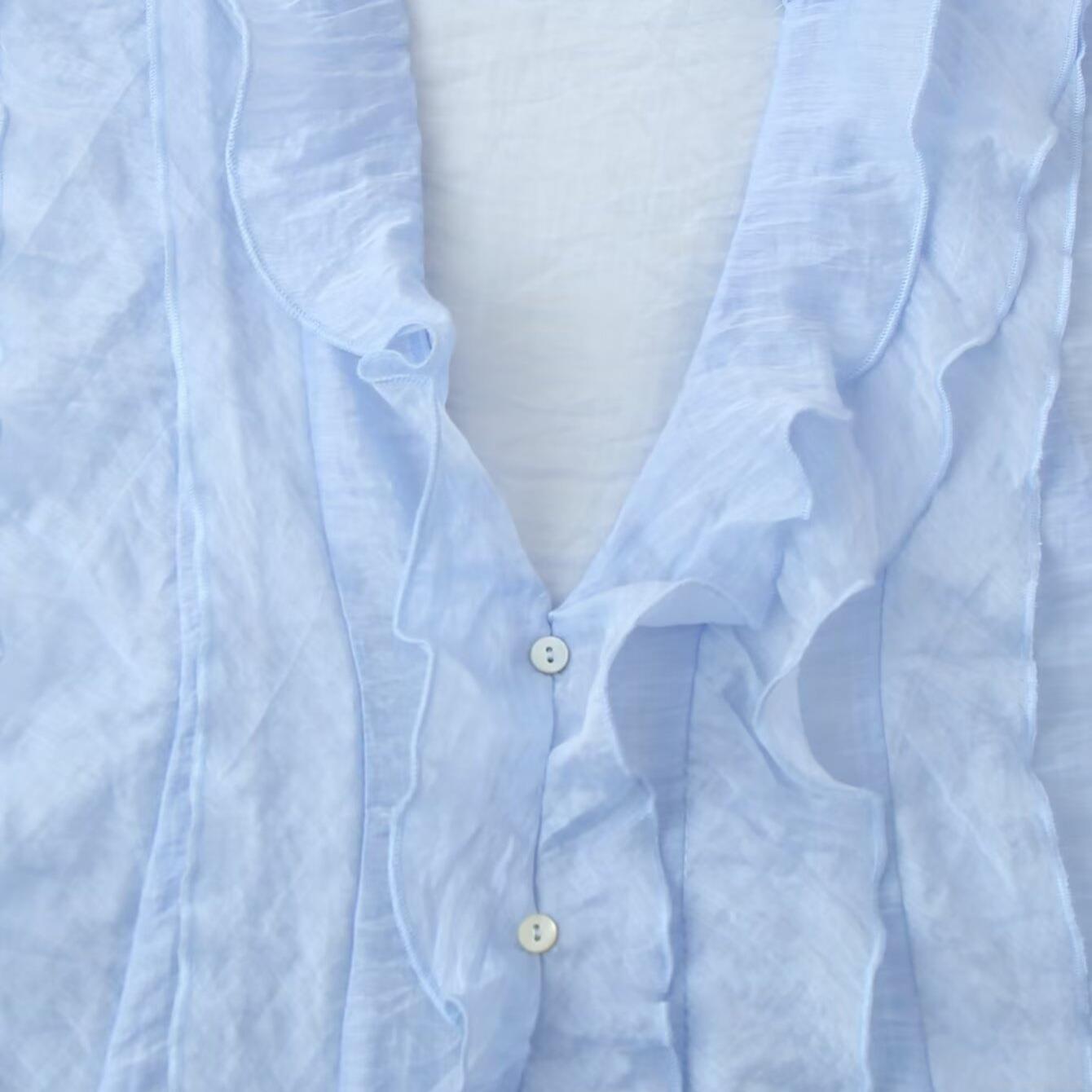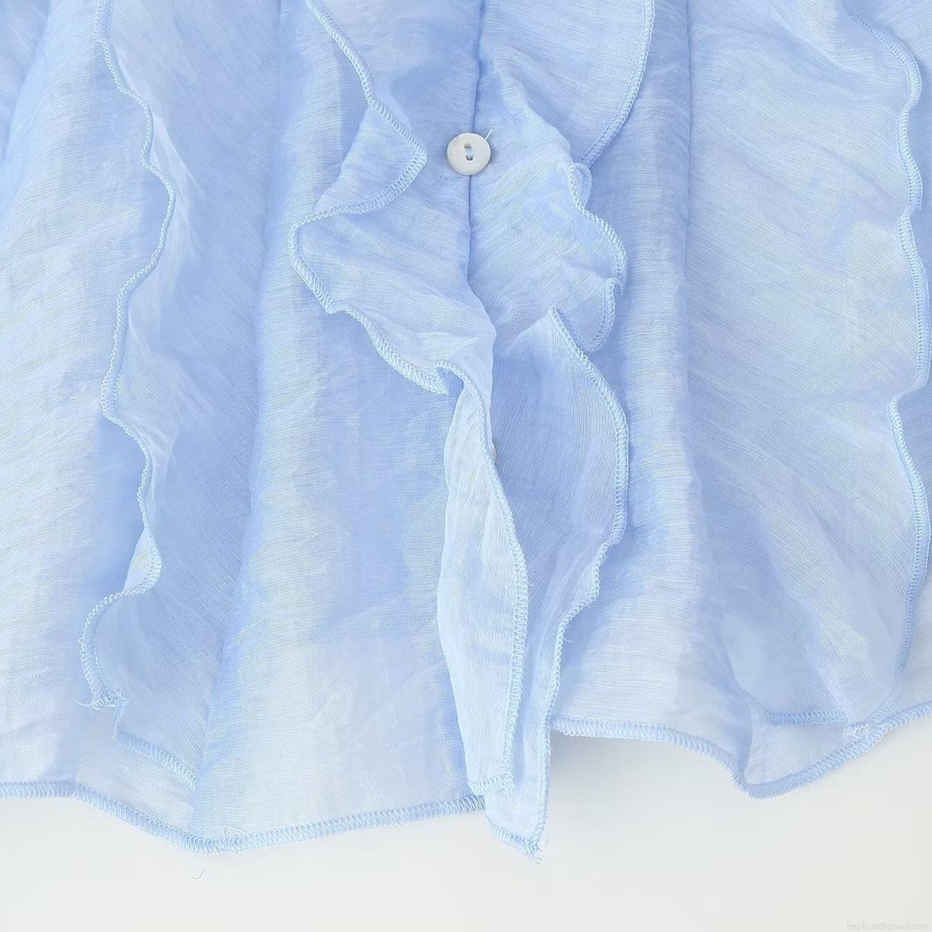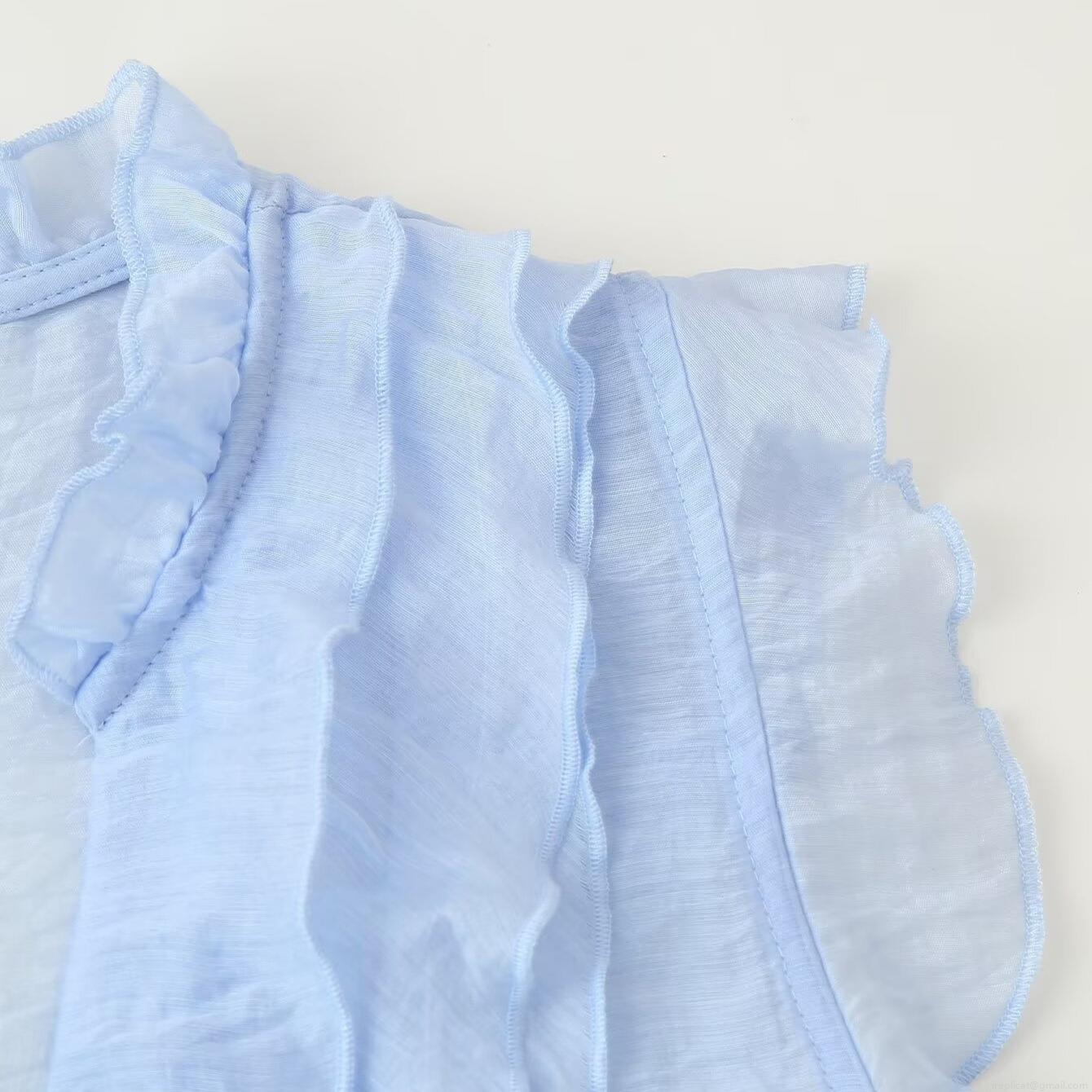 • Women's Summer Sleeveless V-Neck Ruffle Blouse Sweet Tiered Decorative Sky Blue Polyester Spandex Lightweight Casual Top For Daily Vacation