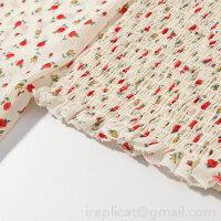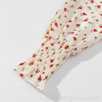 Floral Pattern, Rose, Puff Sleeves, Square Collar, Pleated Decoration