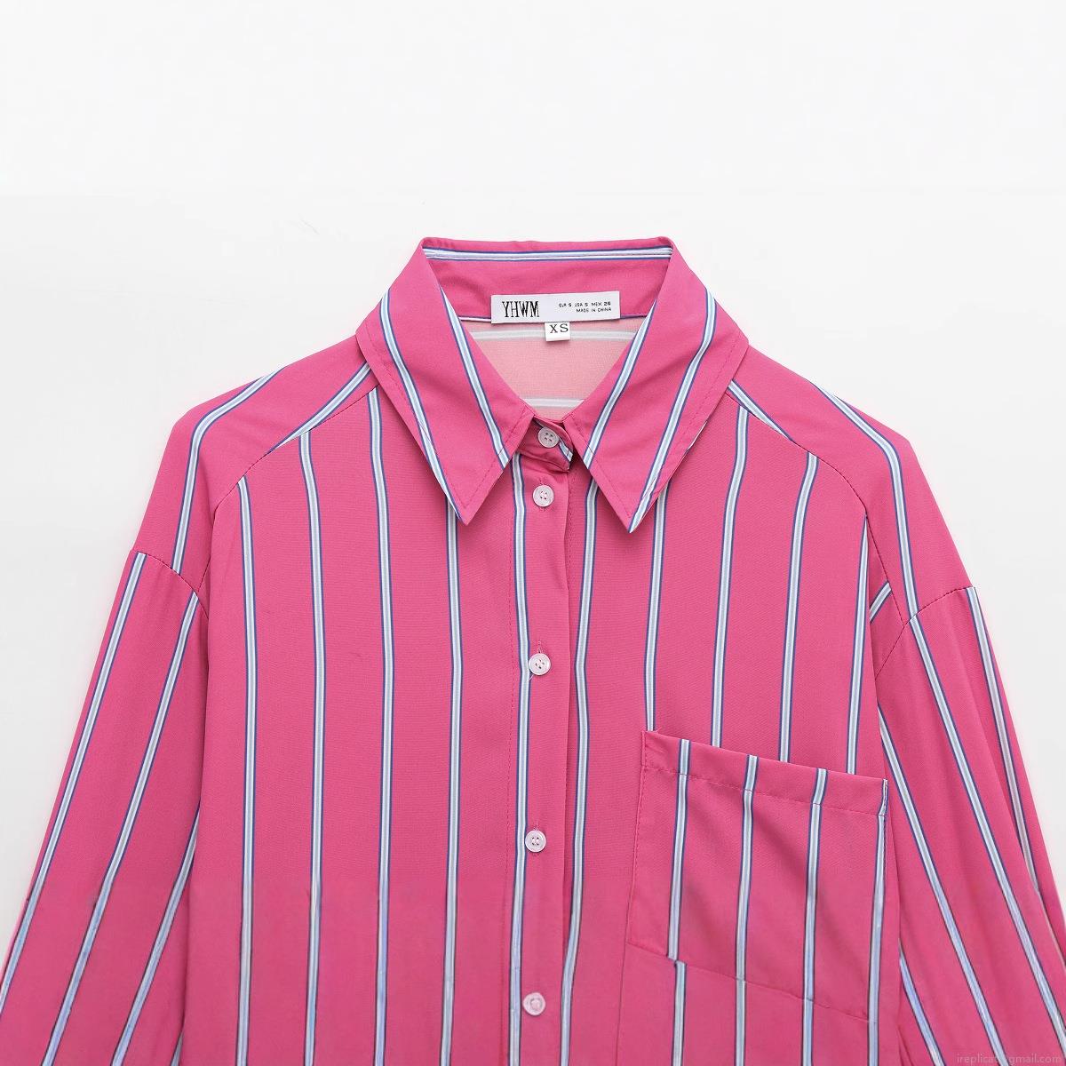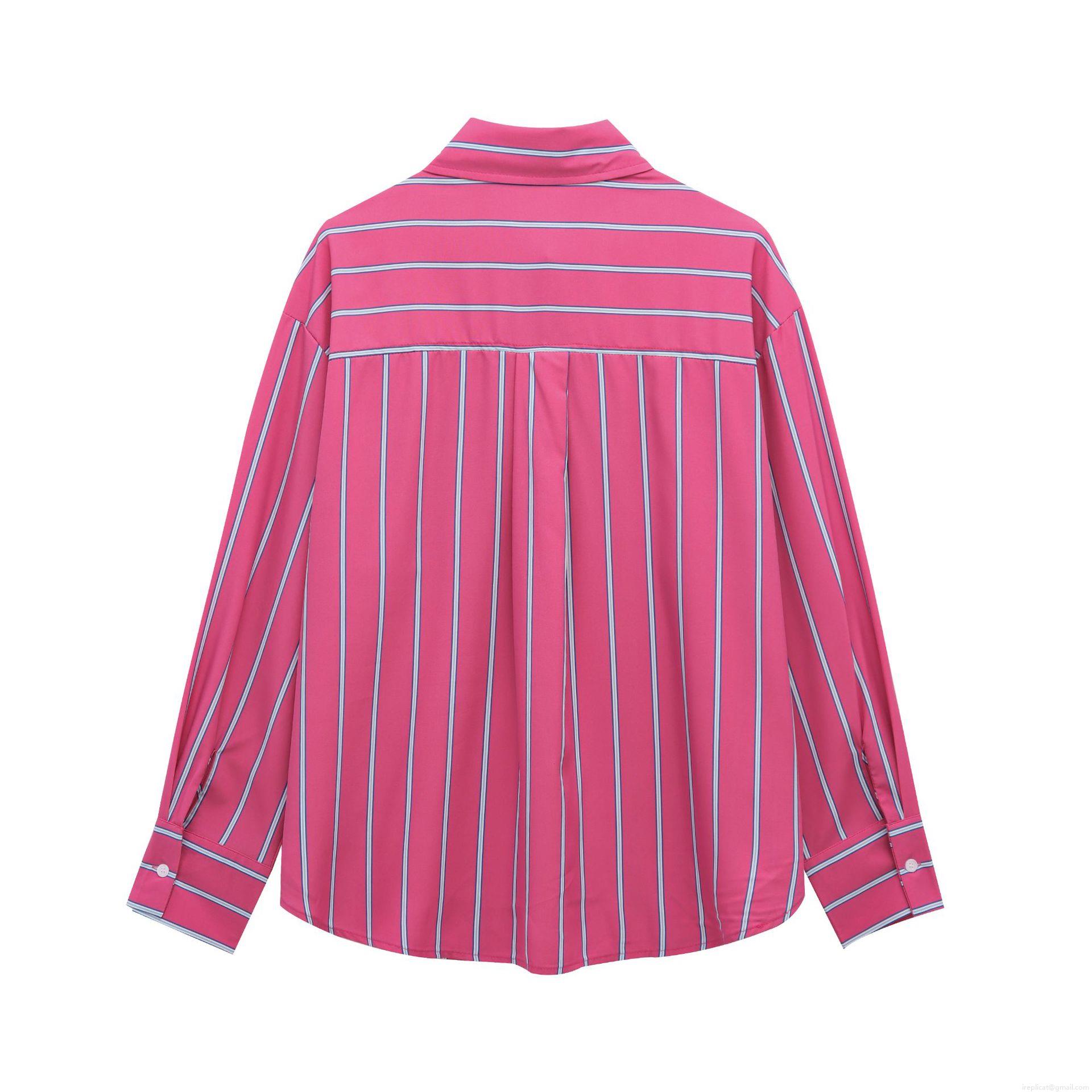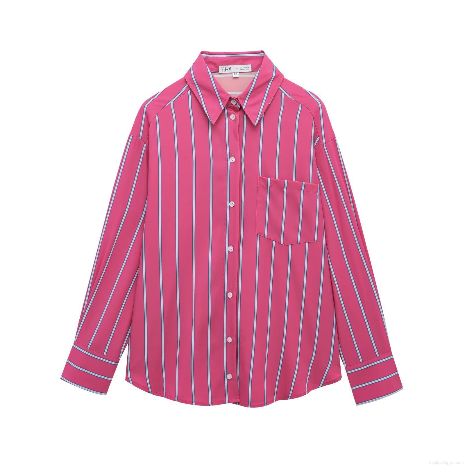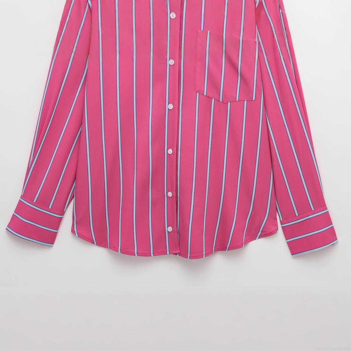• Women's Sweet Fresh Striped Long Sleeve Shirt Button Down Lapel Blouse With Chest Pocket Casual Polyester Spandex Top For Daily Vacation Office Wear