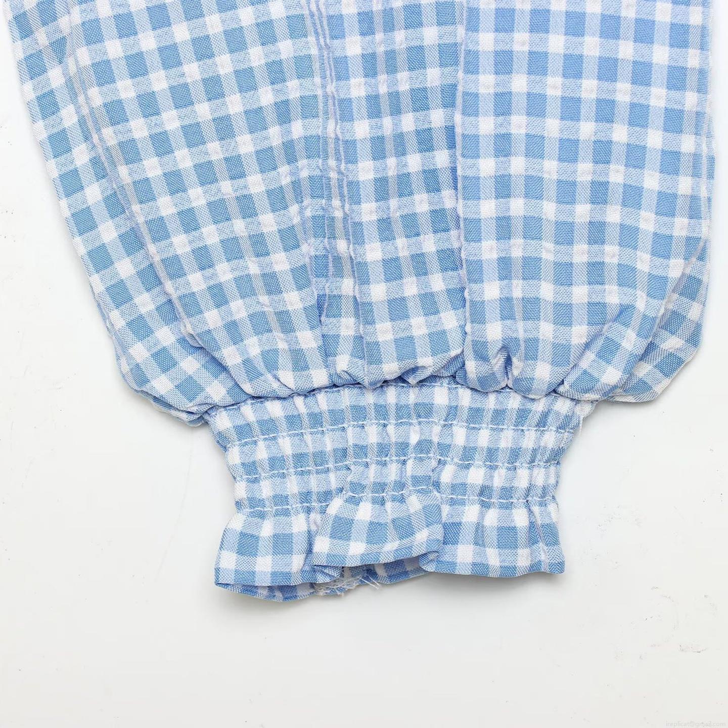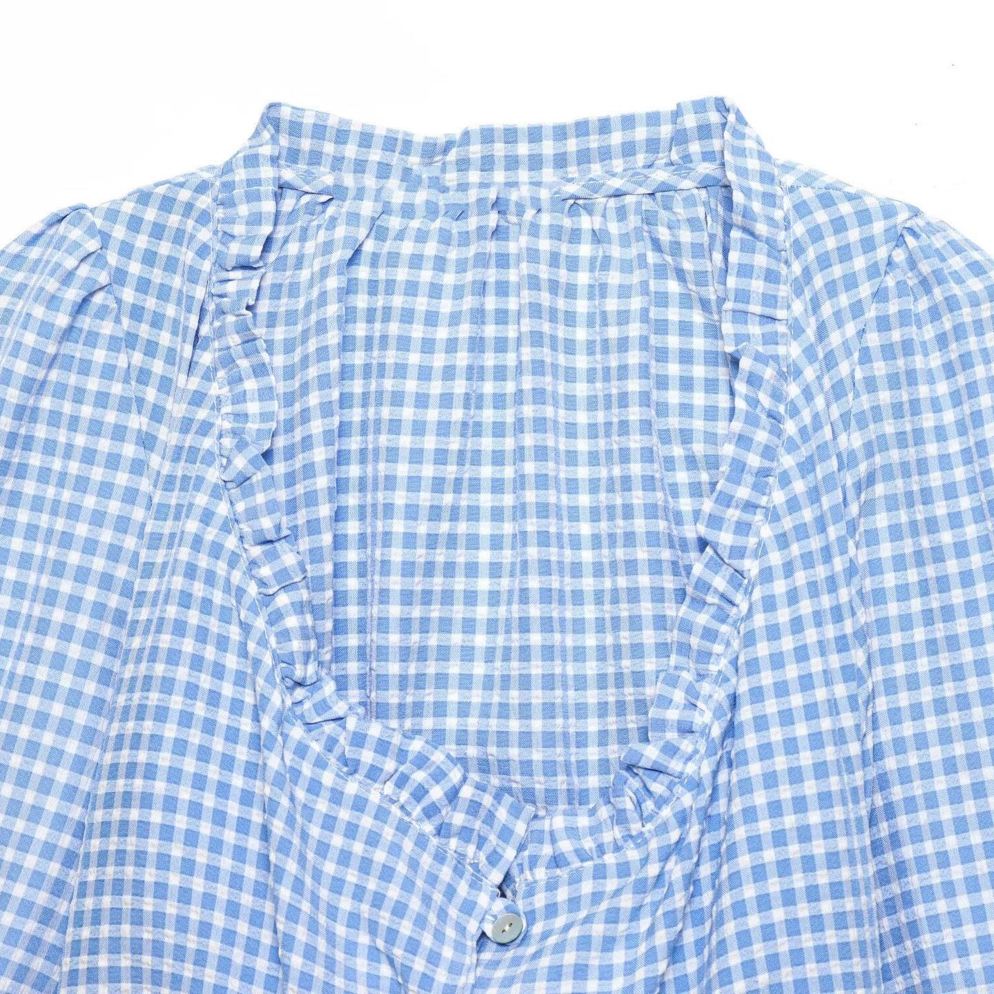 Gingham, Wood Ear Edge, Checkered Pattern, Ruffles, Lace, Lantern Sleeves