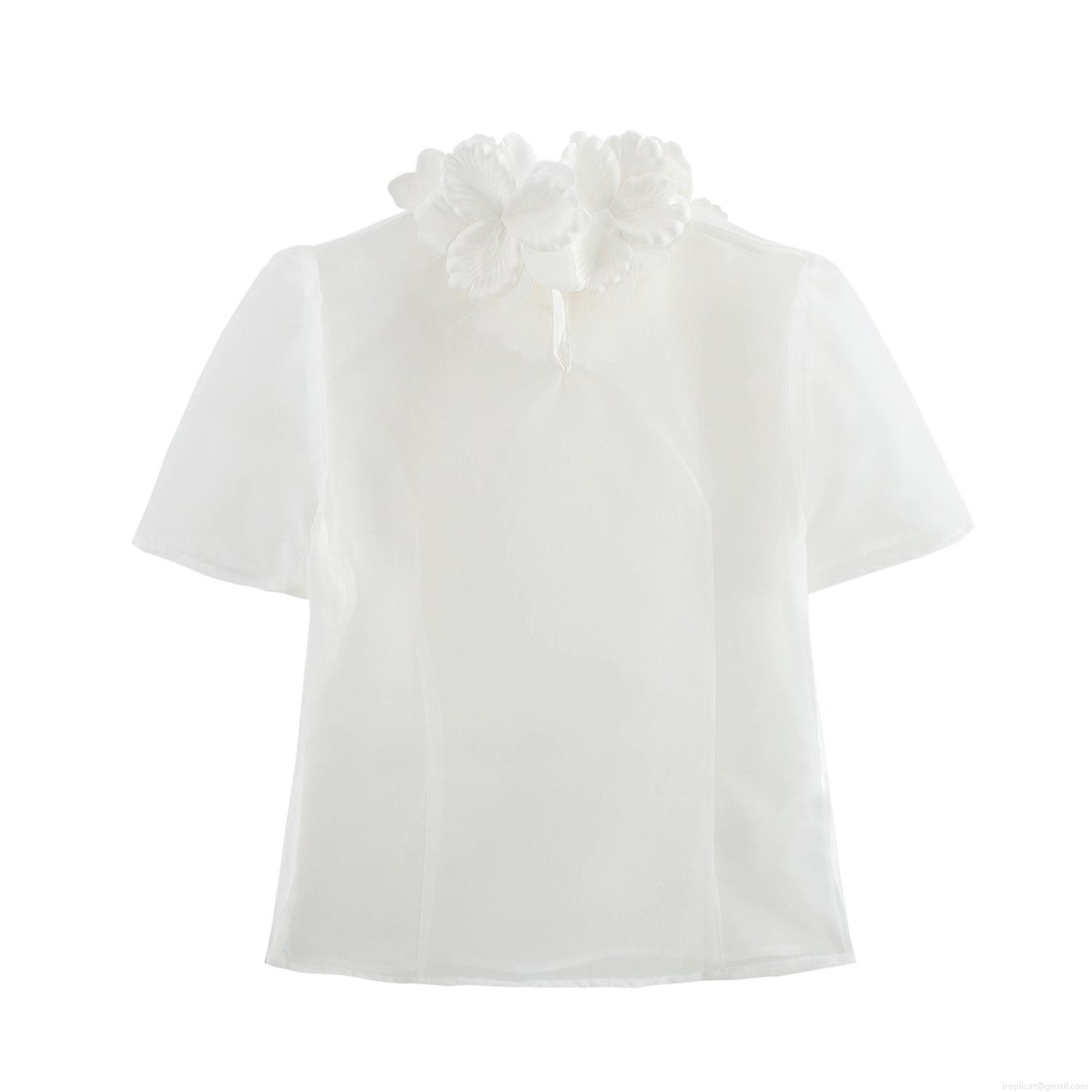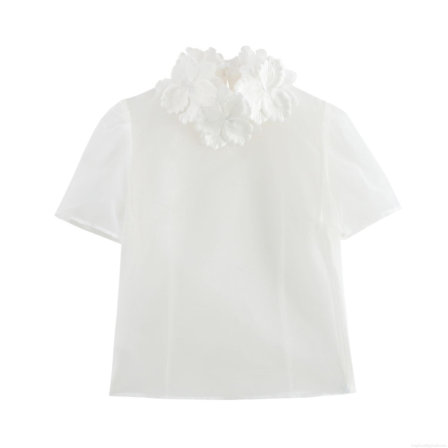 • Women's Sweet Organza Blouse Top 3D Floral Applique Short Sleeve Sheer Shirt For Party Daily Elegant Girl Style