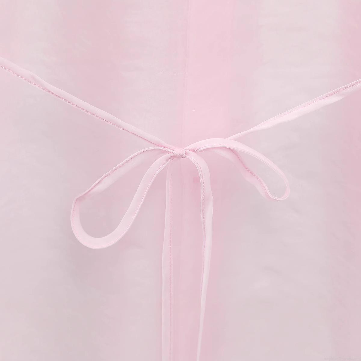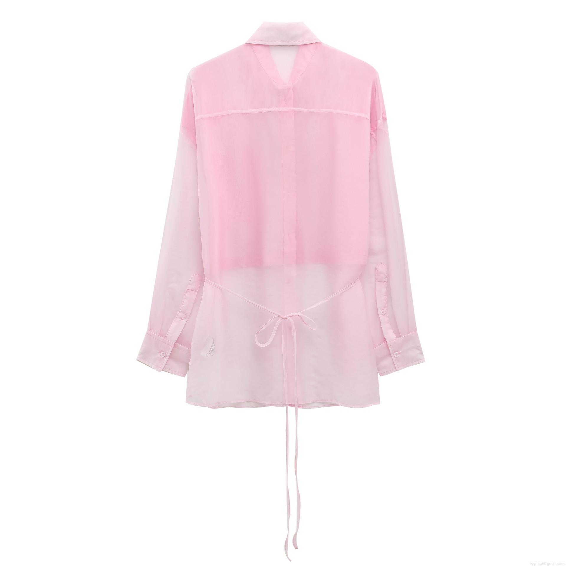 • Women's Sweet Pink Patchwork Shirt Transparent Mesh Long Sleeve Loose Blouse With Back Tie Polyester Organza Top For Women Dating Party