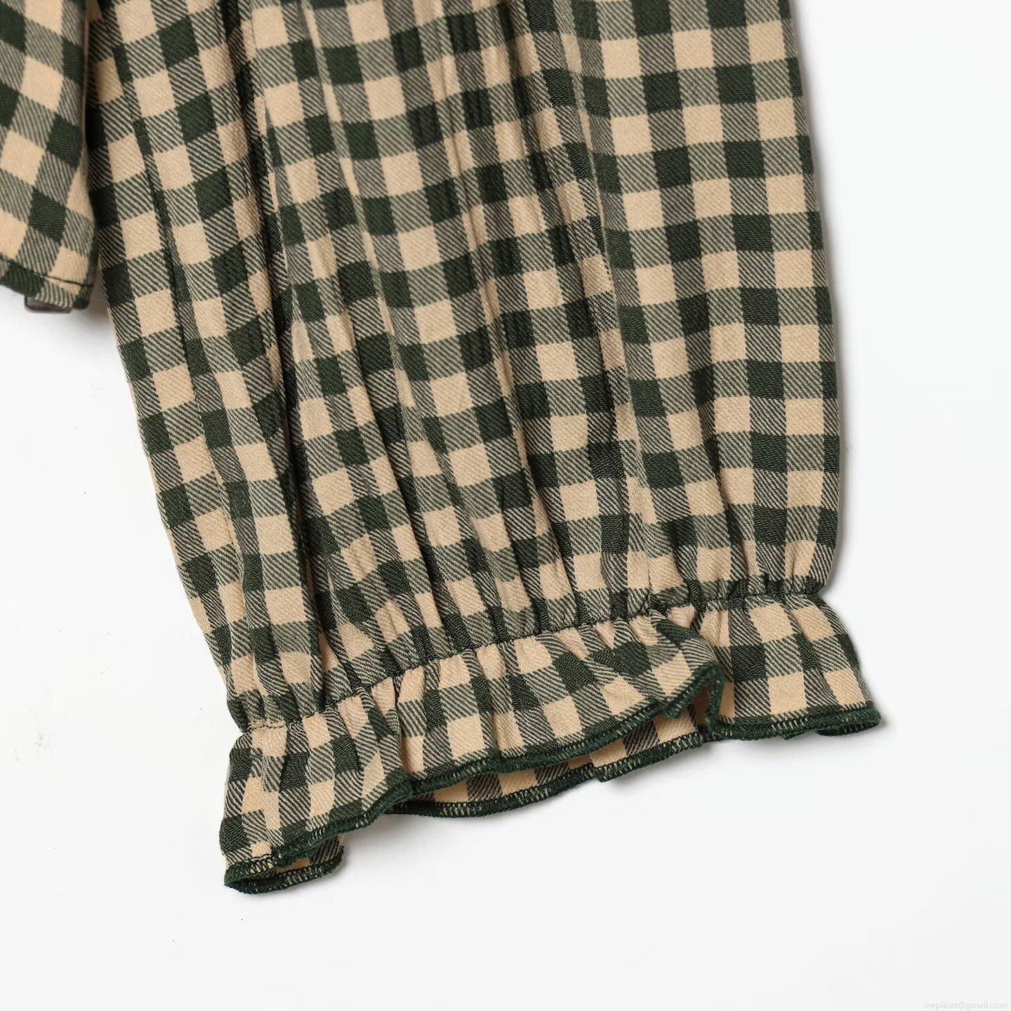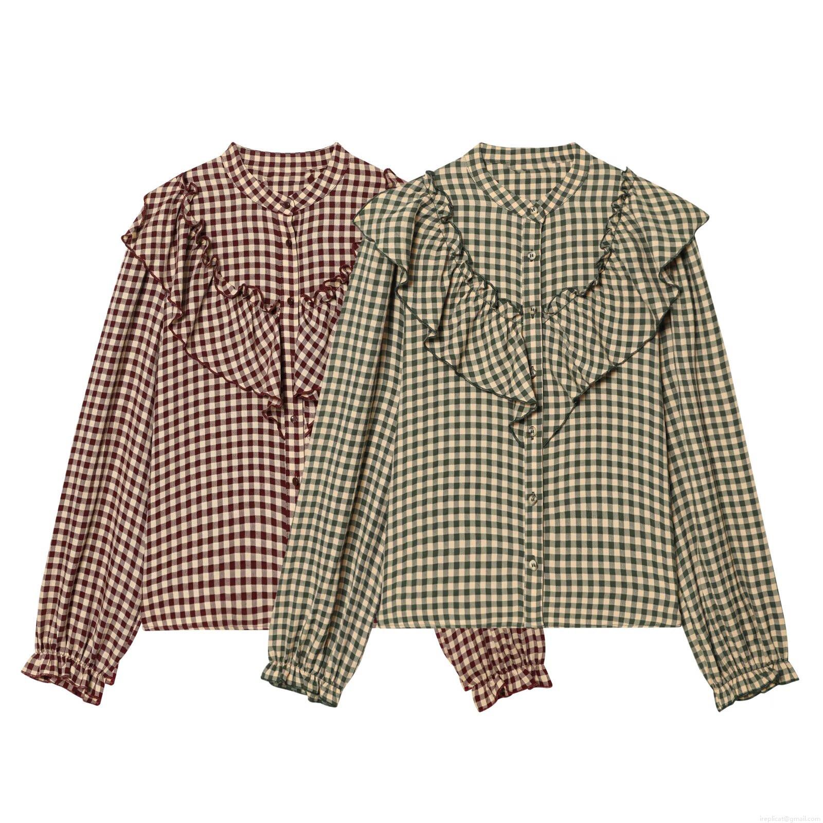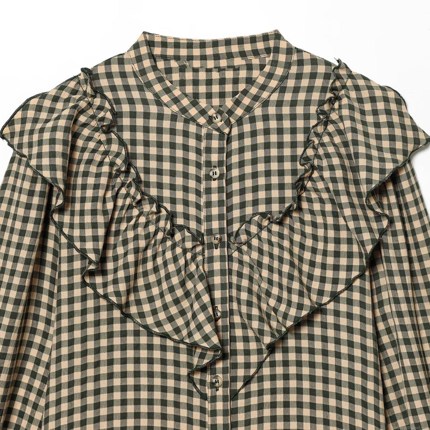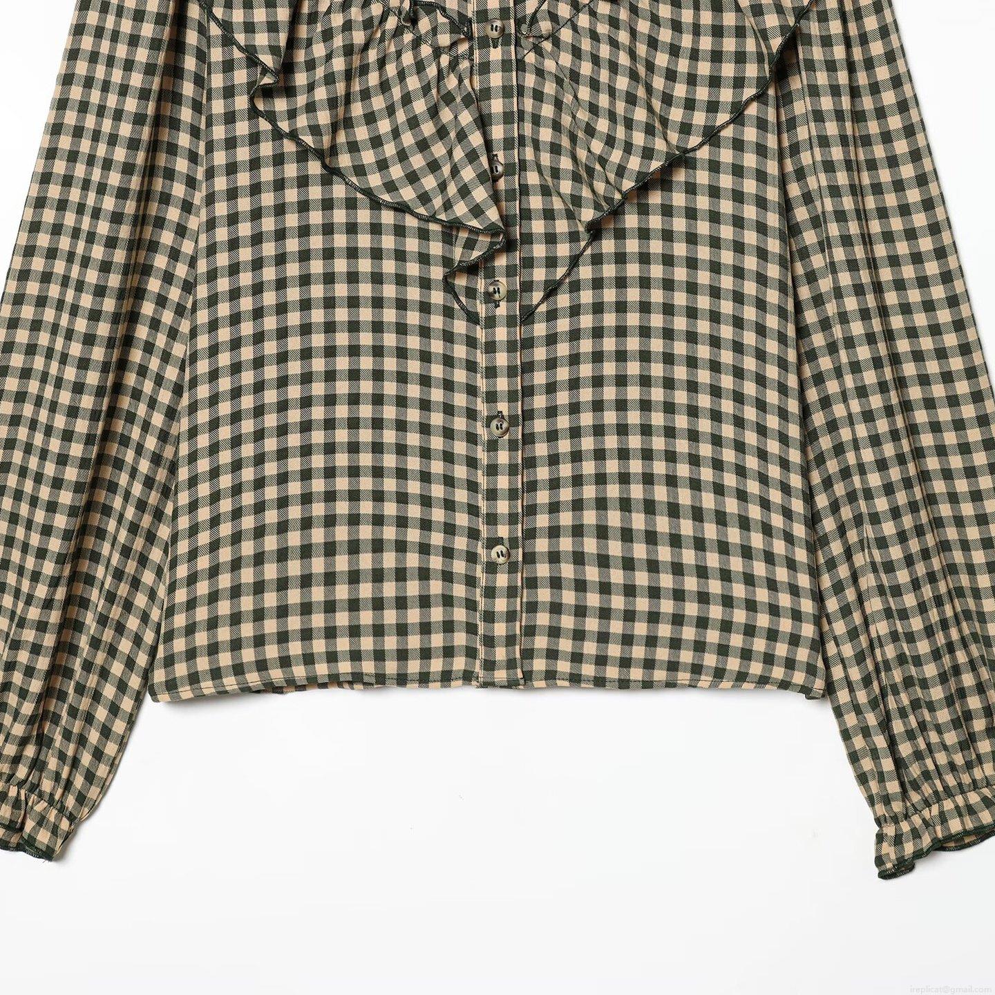 • Women's Sweet Plaid Ruffle Shirt Long Sleeve Cotton Blend Button Down Blouse Regular Fit Casual Tops For Daily Wear