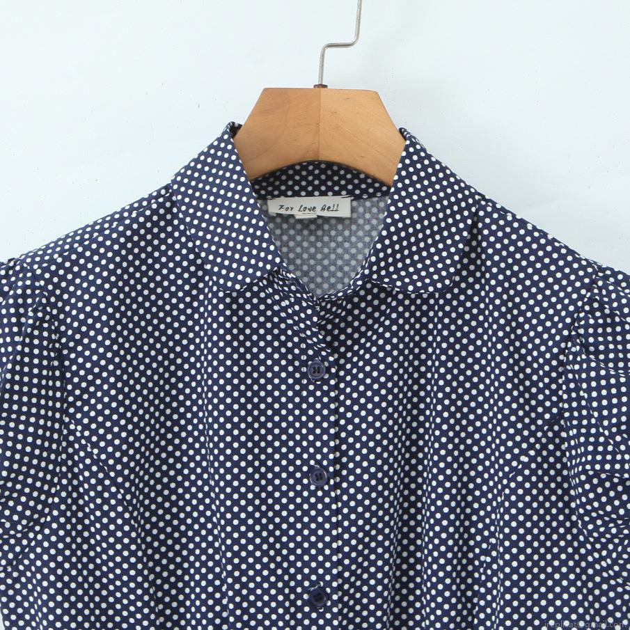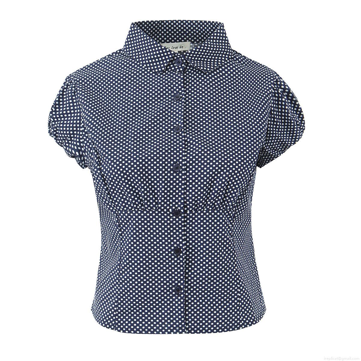 • Women's Sweet Polka Dot Puff Sleeve Blouse Short Sleeve Button Up Shirt Cotton Blend Slim Fit Top For Summer Casual Daily Wear
