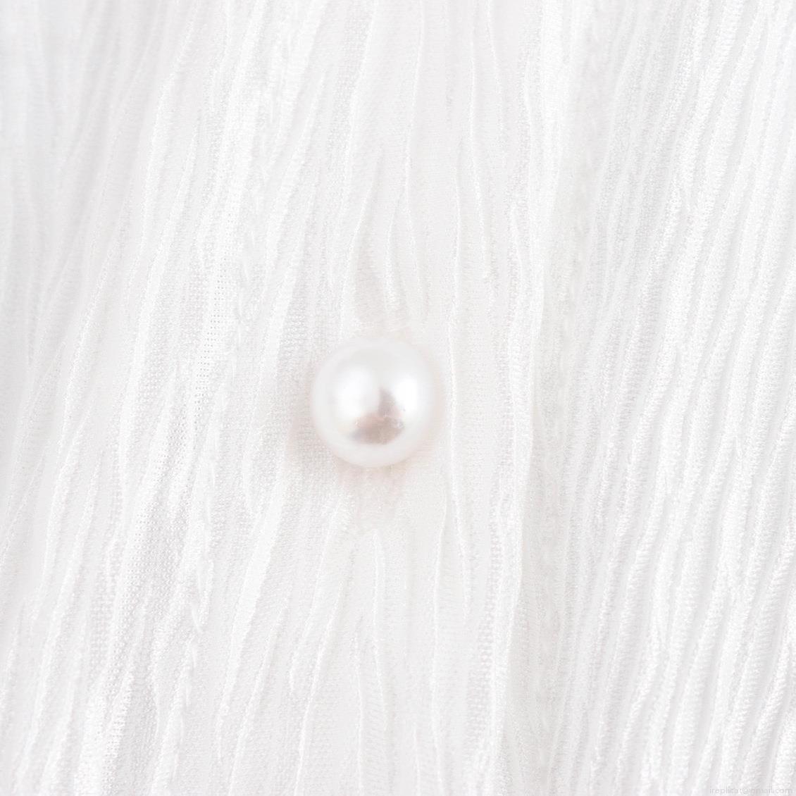 Women's Textured White Blouse 3D Fabric Flower Decoration Pearl Button Lapel Shirt Casual Vacation Puff Sleeve Top
