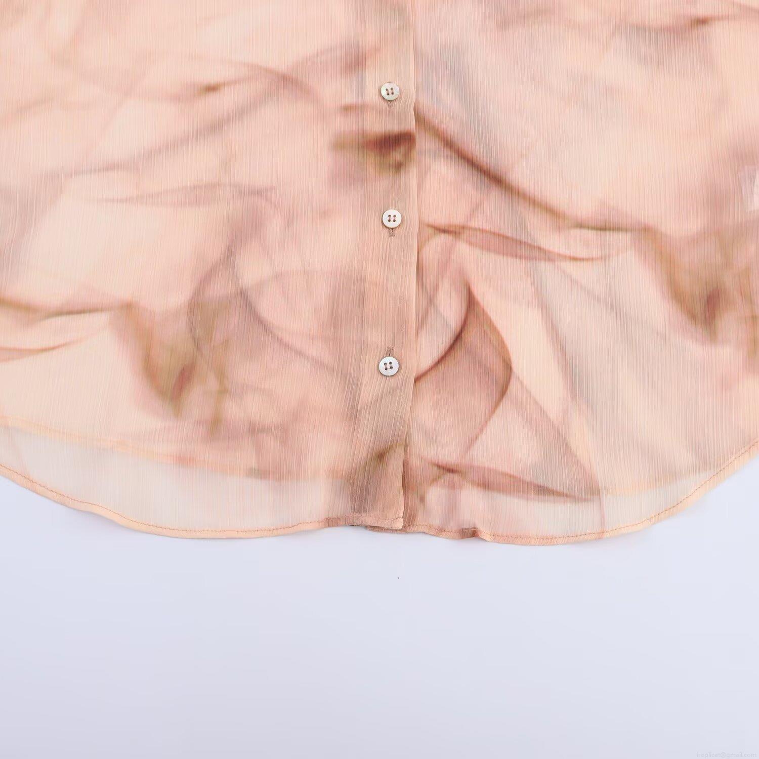 • Women's Tie Dye Marble Print Long Sleeve Shirt Elegant Lapel Pleated Polyester Blouse With Pearl Luster Buttons Street Casual Tops