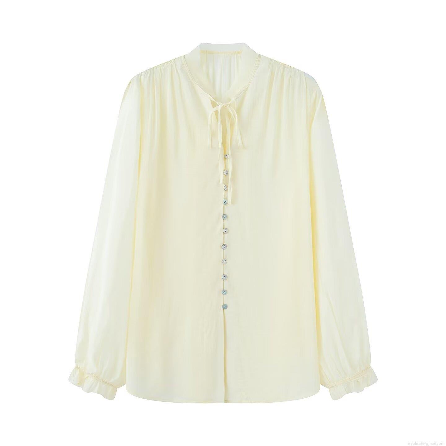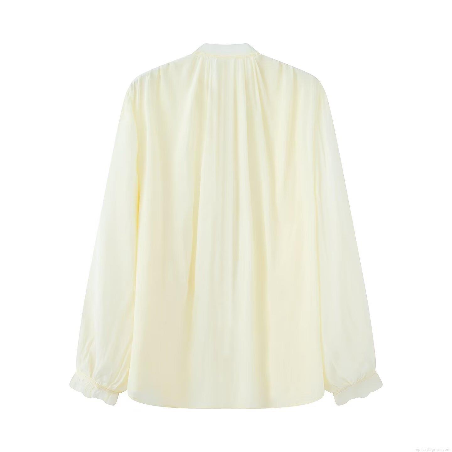 • Women's Tie Neck Long Sleeve Button Up Chiffon Blouse Casual Loose Fit Office Work Shirt Elegant Solid Color Soft Polyester Top for Women Ladies
