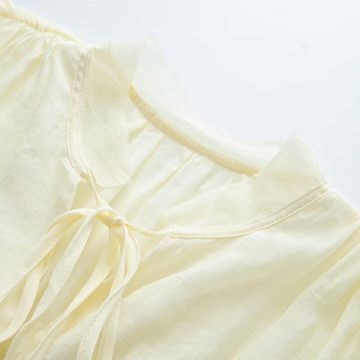 Solid Color, Pleats, Ruffles, Buttons, Lace