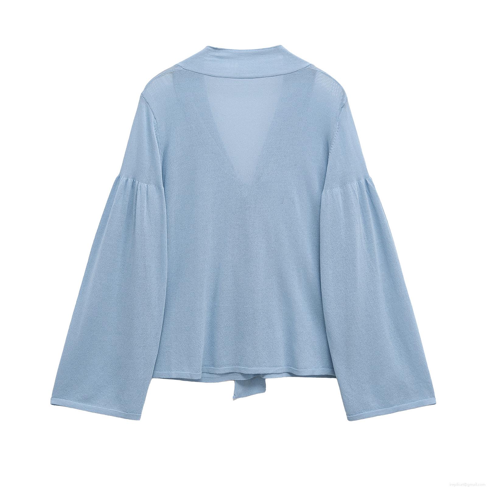 • Women's V Neck Lantern Sleeve Tie Front Knit Blouse Elegant Solid Color Semi-transparent Shirt Top for Spring Fashion Casual Dating Lady