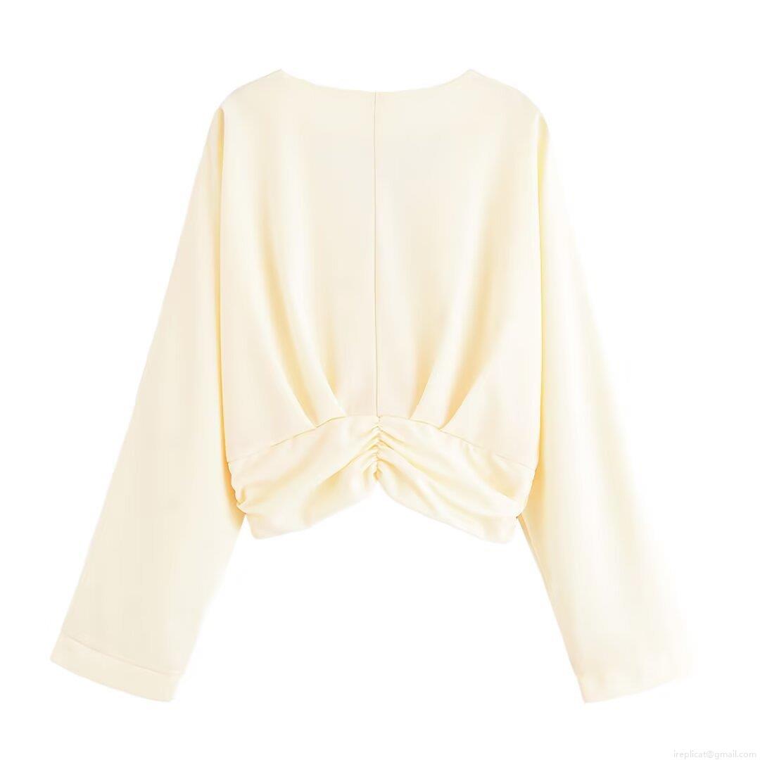 Women's V Neck Single Breasted Ruched Cropped Blouse Long Sleeve Polyester Slim Fit Solid Color Autumn Western Street Style Shirt Top