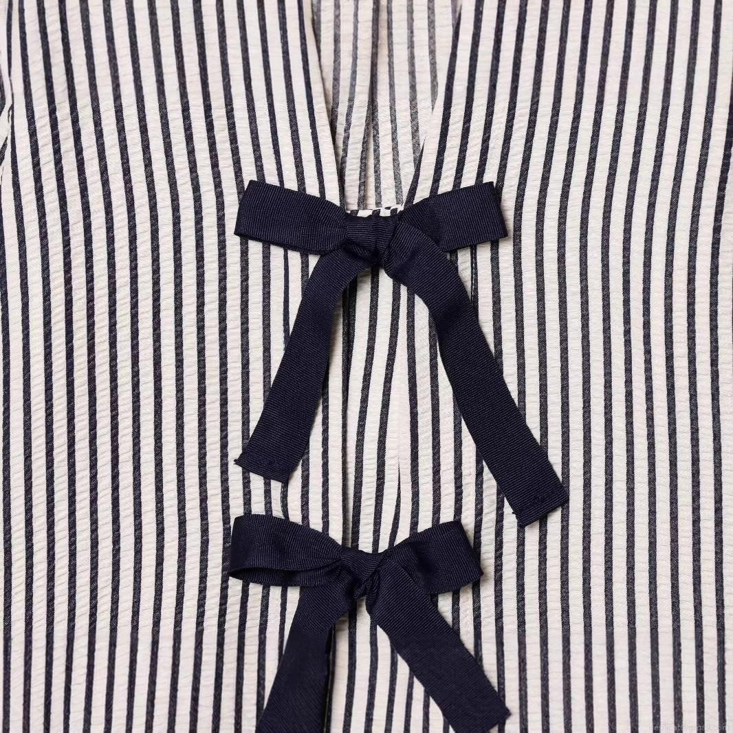 Stripe, Bow, Color Blocking, Seersucker, Lantern Sleeves