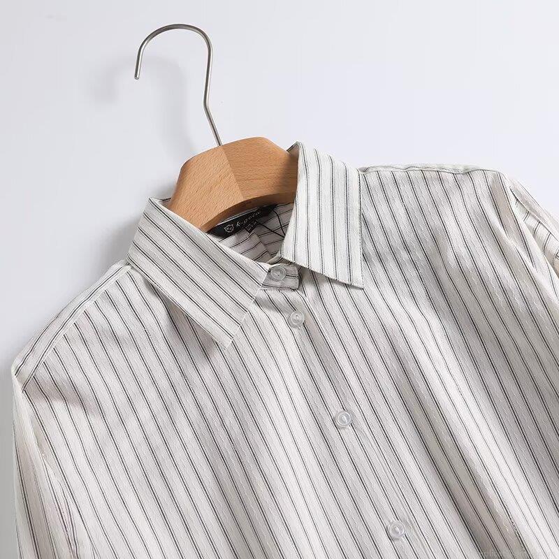 Women's Vertical Striped Long Sleeve Button Down Shirt 95% Cotton 5% Spandex Loose Casual Blouse For Office Daily Wear Fashion Versatile Tops