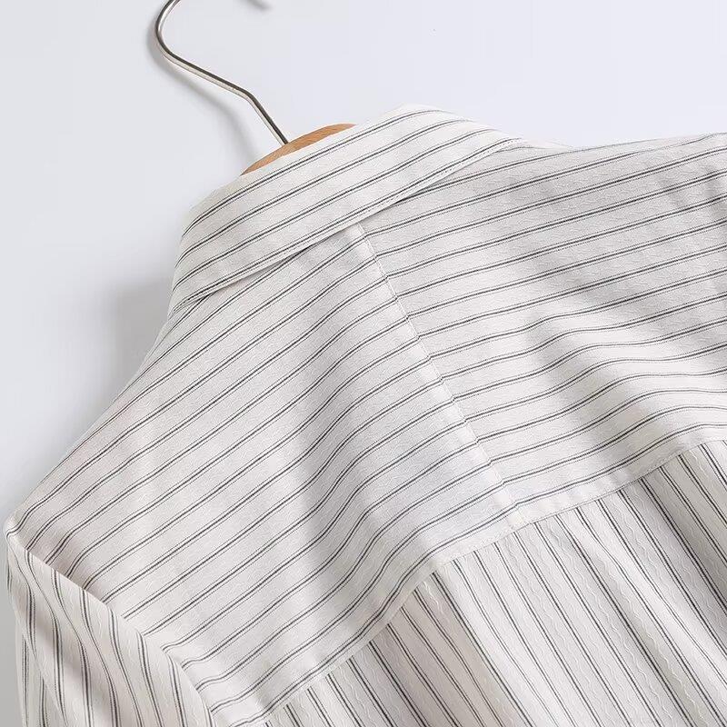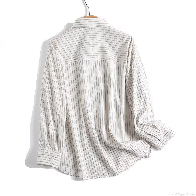 • Women's Vertical Striped Long Sleeve Button Down Shirt 95% Cotton 5% Spandex Loose Casual Blouse For Office Daily Wear Fashion Versatile Tops