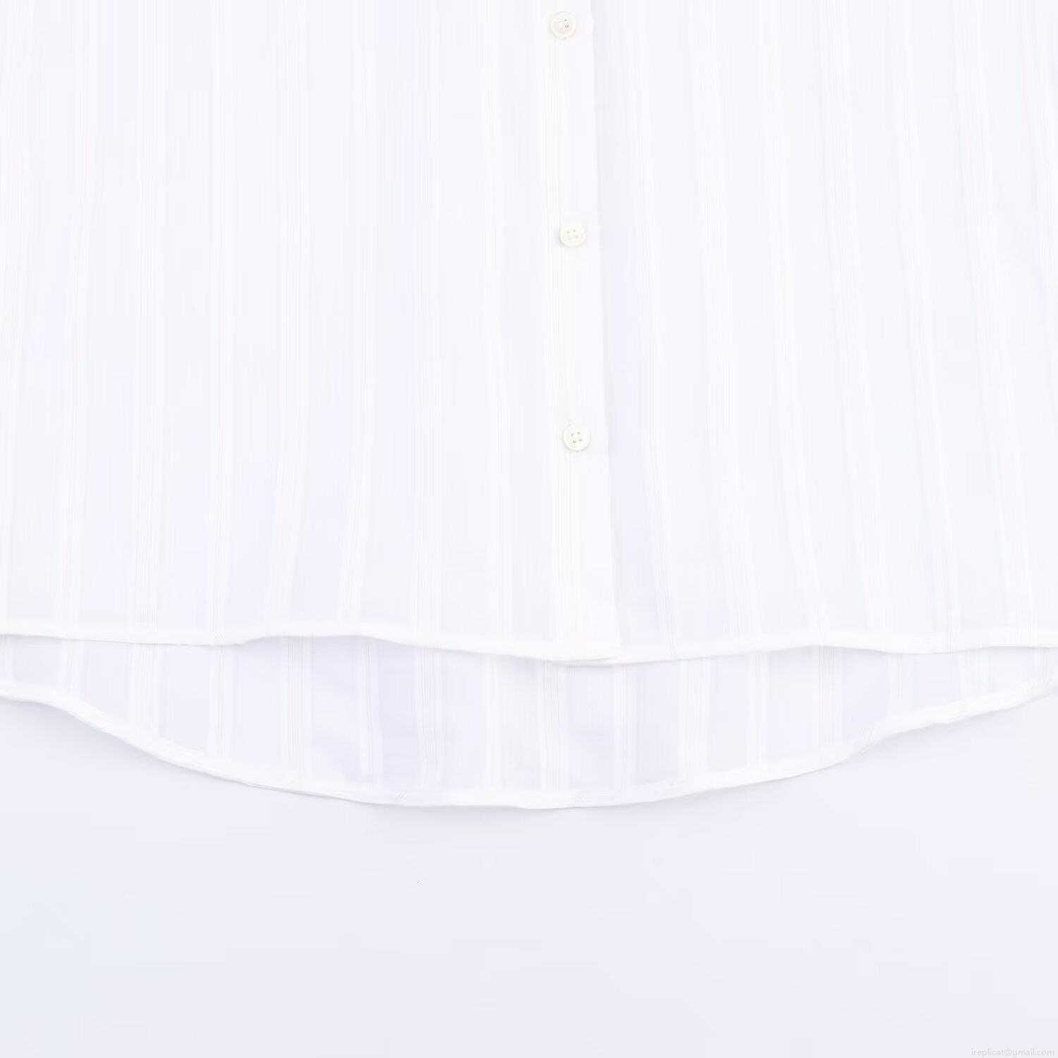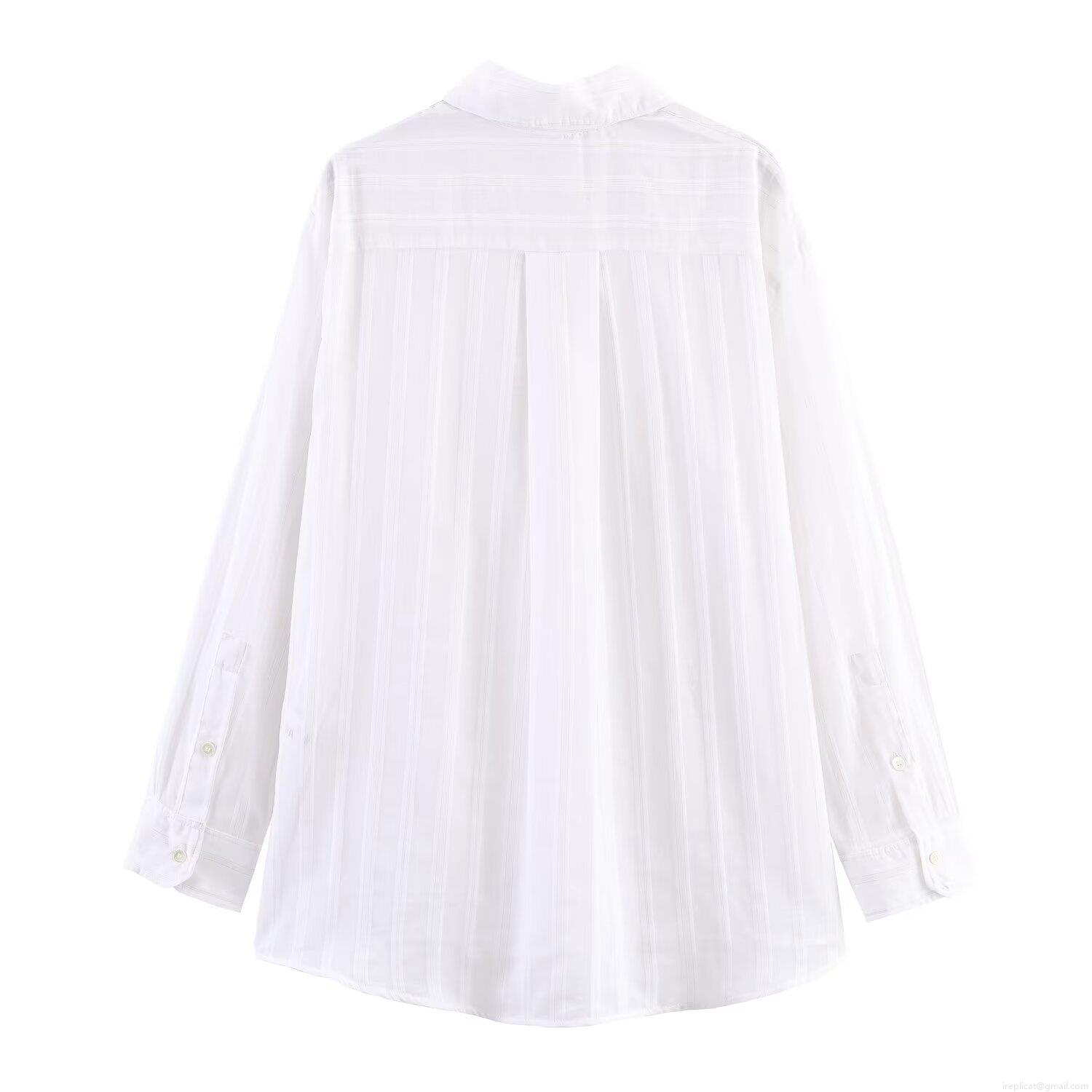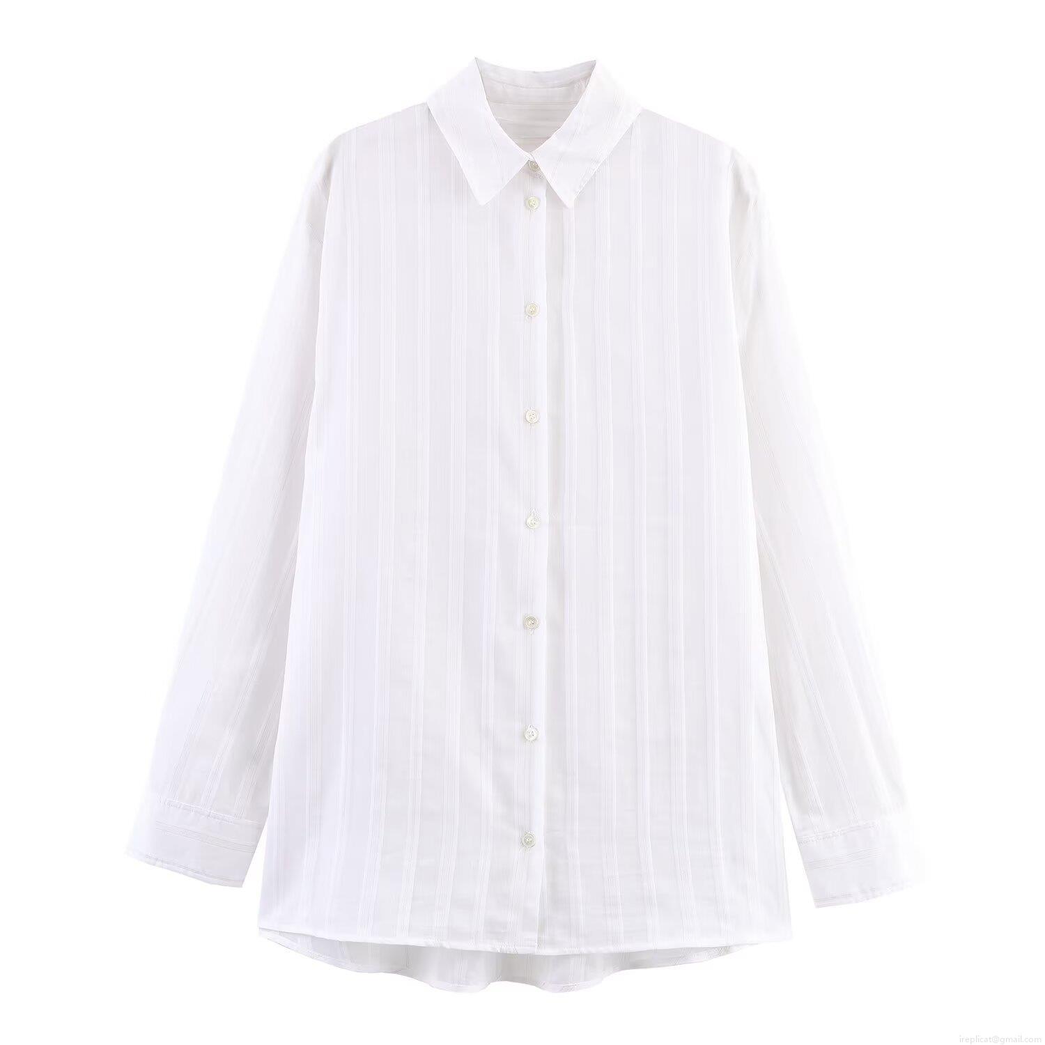 Women's Vertical Striped Long Sleeve Shirt Elegant Lapel Button Down Blouse Casual Loose Polyester Office Work Tops For Ladies White