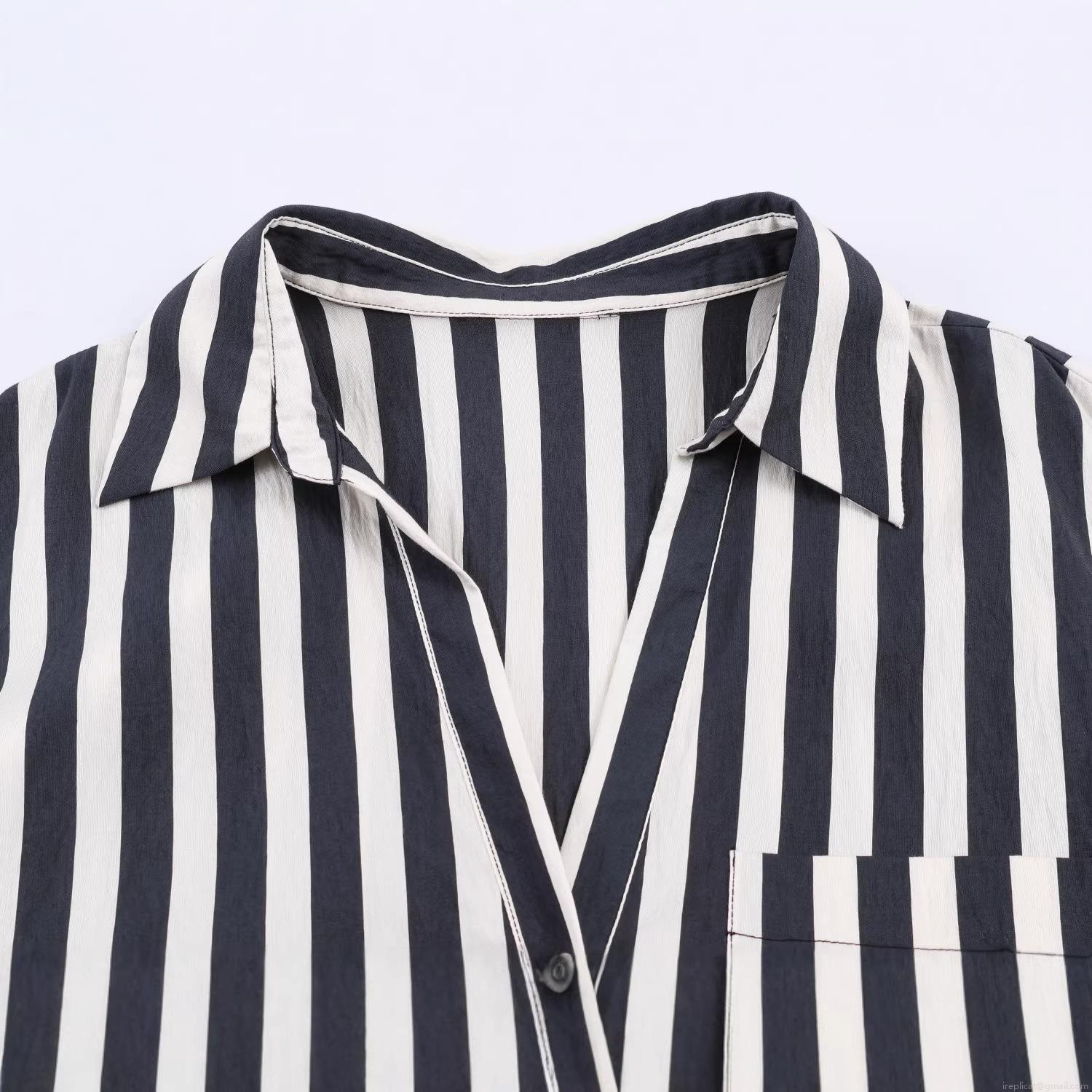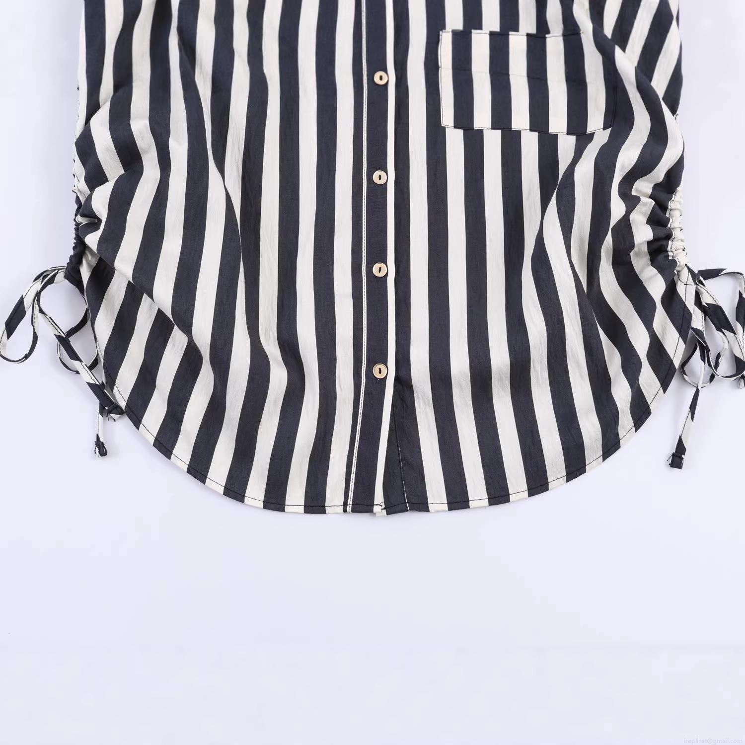 • Women's Vertical Striped Shirt Long Sleeve Polyester Button Down Blouse Side Drawstring Ruched Bottom Casual Elegant Office Top for Women